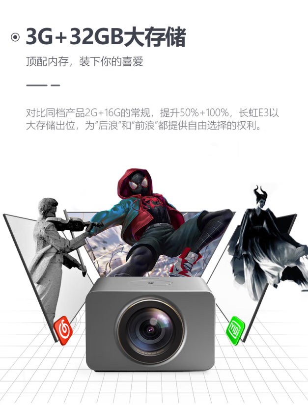 长虹E3深空灰 智能高清 无线wifi 家用小型家庭影院酒店足浴民宿商务办公led投影机