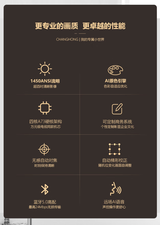 长虹K5 投影仪 高清智能AI语音 无线wifi 家用小型家庭影院酒店足浴民宿影吧商务办公led投影机
