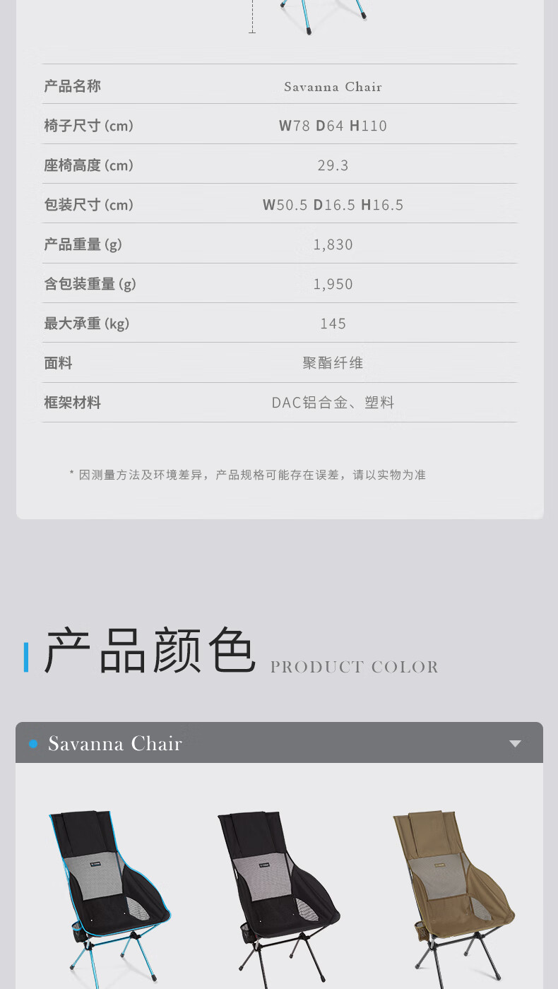 HELINOX Savanna Chair 萨凡纳户外休闲椅 Black 黑色