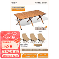 原始人户外折叠桌铝合金蛋卷桌露营桌子野餐桌椅便携式装备野营野炊 家庭出行【120桌+加高月亮椅*4】