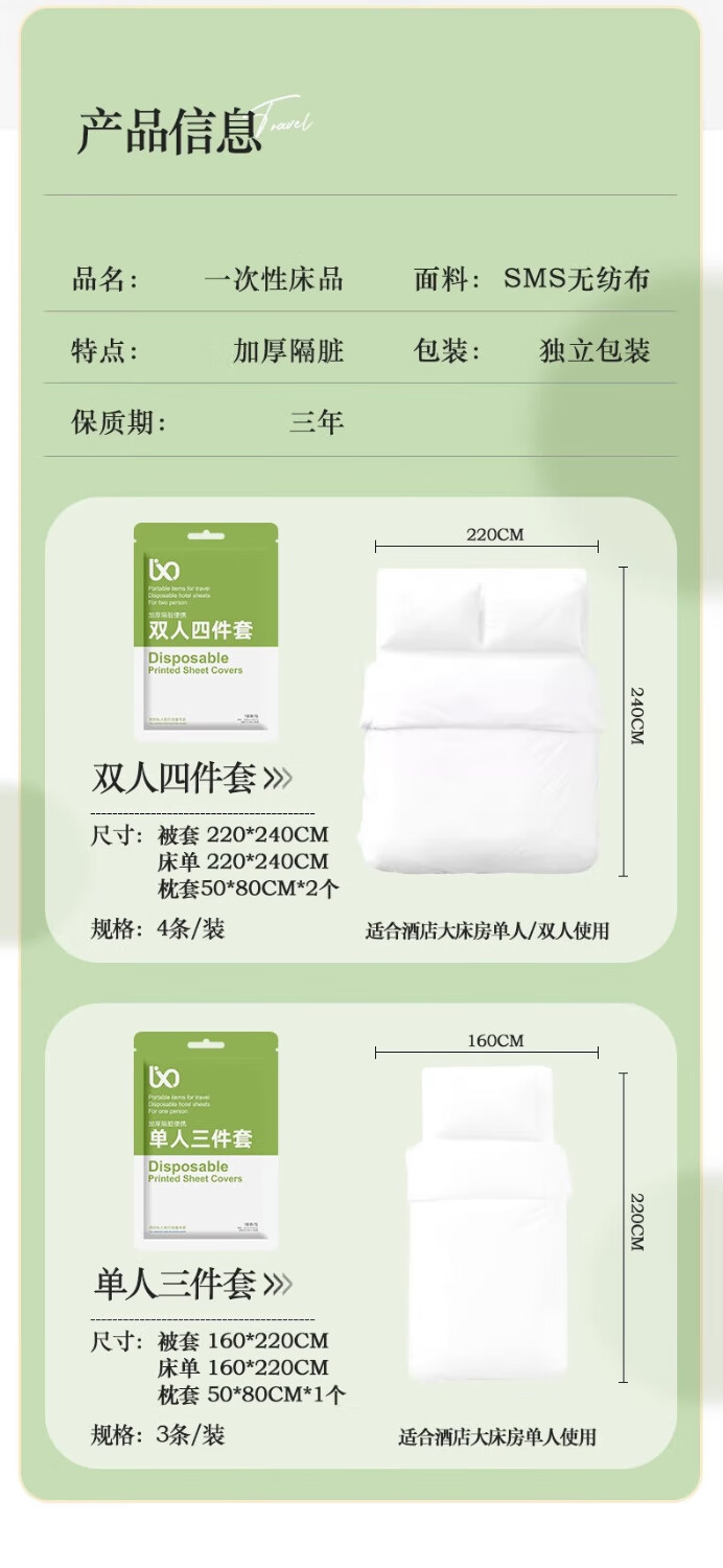 这家的一次性产品真心不错!✊床单质量很好,而且厚实,☺真空包装挺方便的,放在行李箱里根本不占地方,而且完全不用担心卫生问题。💗