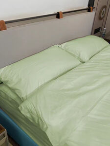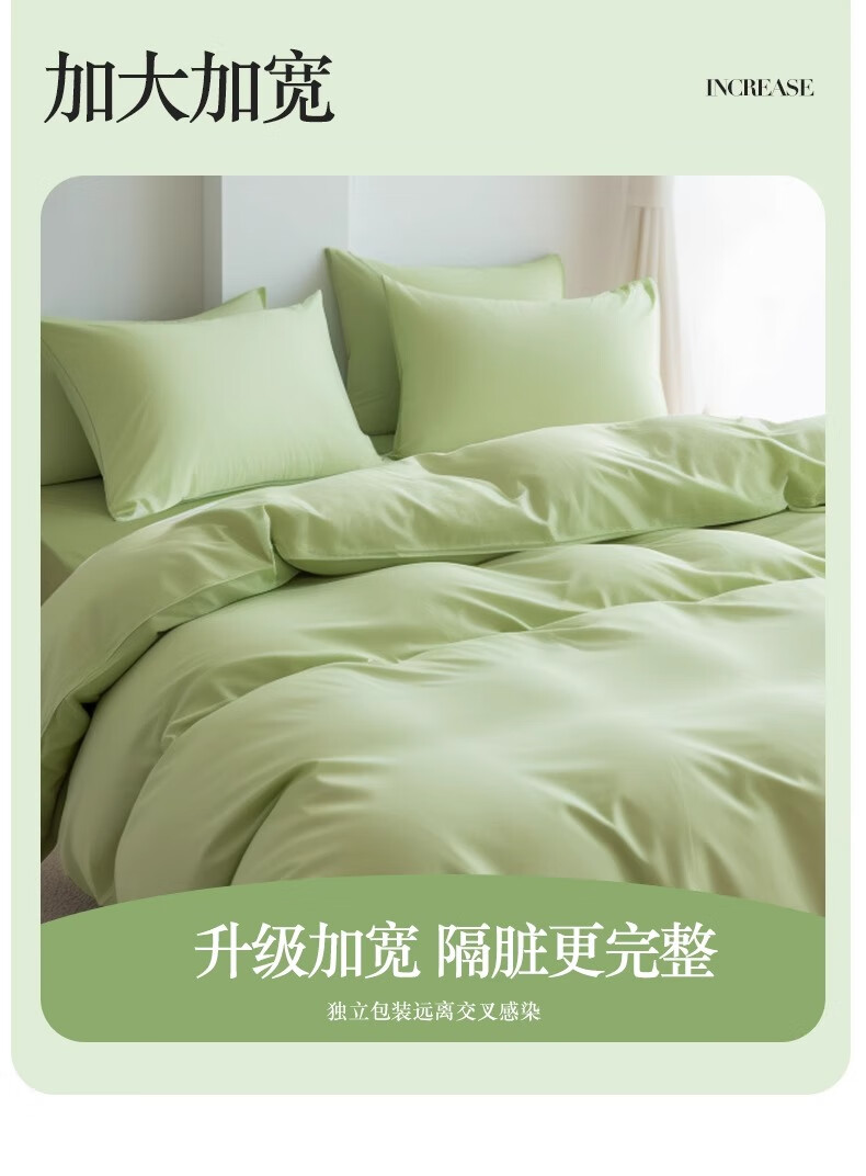 这个床单一铺上看着就心情很好,绿色真的太好看了,买的时候还担心来着,没想到收到一点色差都没有,非常满意!!!床单本身质量还挺不错的,比我想象中的要柔软舒适很多,而且打开没有异味,真的爱了。