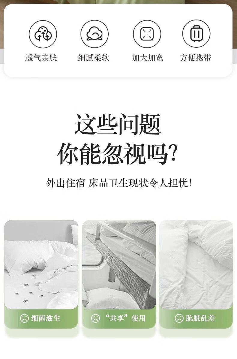 这家的东西真的都蛮不错的,这床单料子软,跟皮肤接触也舒服,用起来住酒店也能放心,压缩的,放行李箱也不占位置,面料很厚实,适用感好