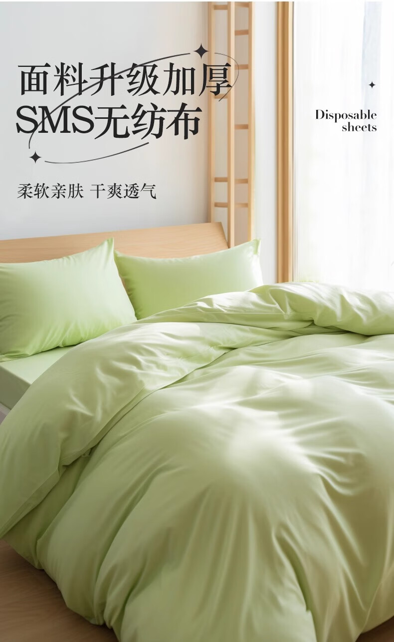 面料还挺舒服的,在外担心酒店床单不干净,用一次性床单就比较安心,有需要会再来