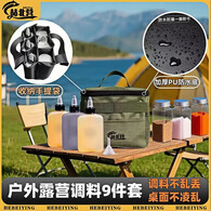 赫北营户外便携式调料瓶套装露营烧烤调味盒收纳包油瓶分装瓶野餐袋 丛林绿调料包【9件套】