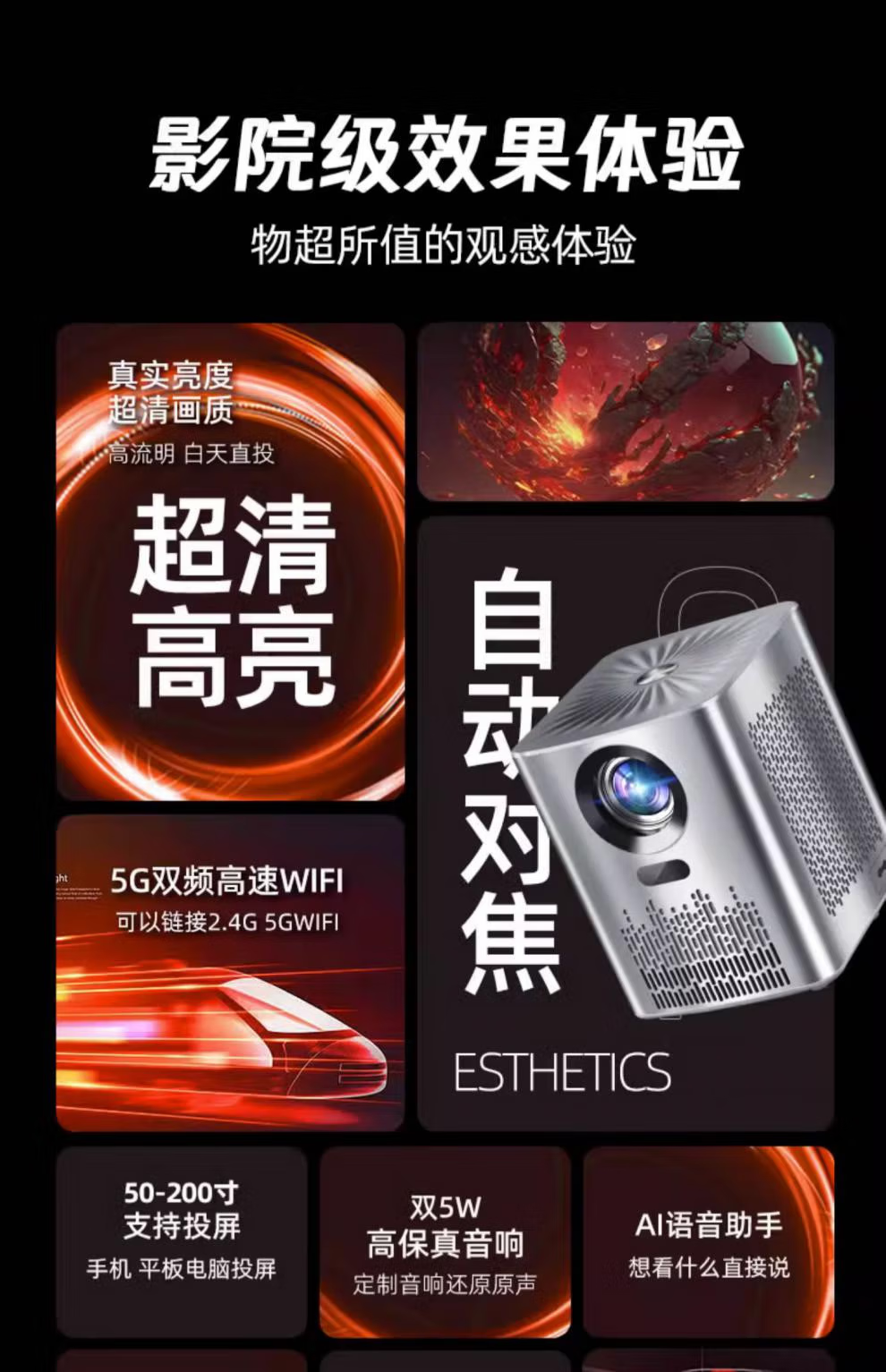 投影仪家用手机超清高清投墙小型全自动投影电视机一体机2025款 智能超清镜头-内置安卓系统-礼品