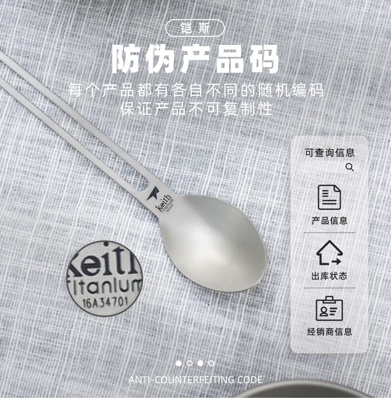 KEITH铠斯【钛轻量餐勺】钛勺叉勺子短勺饭勺饭叉钛餐具精致露营轻质勺 Ti5202纯钛流线餐叉
