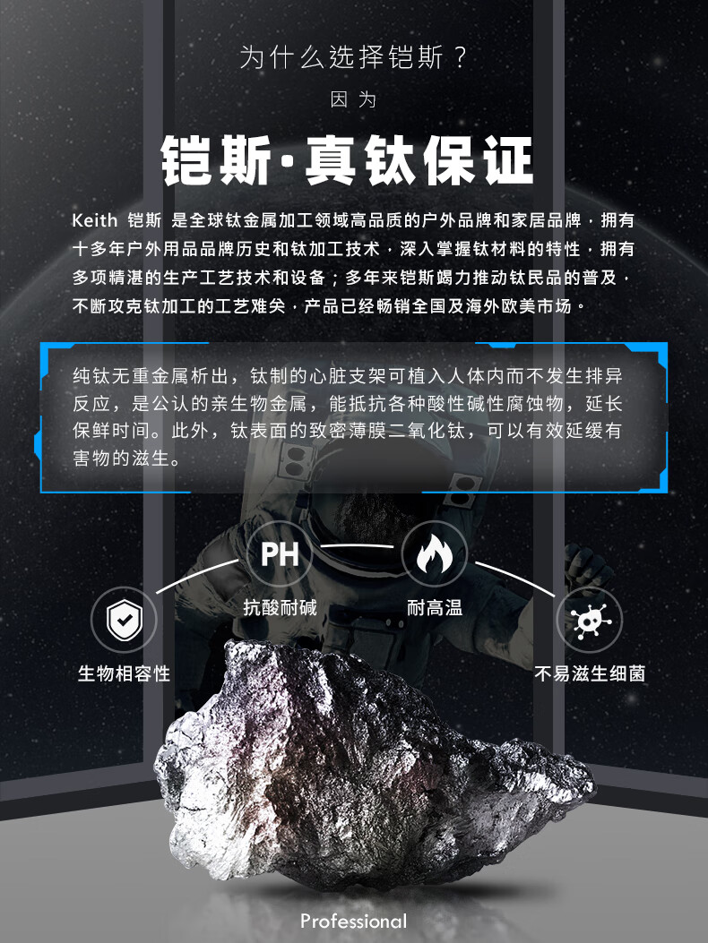 KEITH铠斯【折叠柄钛饭盒】便携户外餐具钛实用小碗 Ti5323-折叠柄碗300ML
