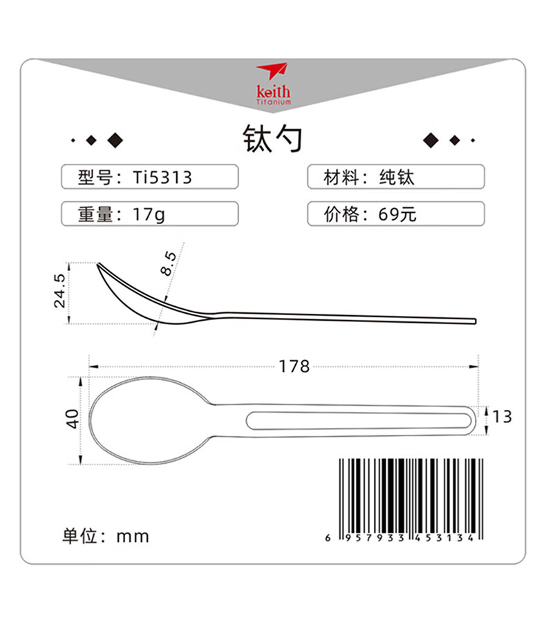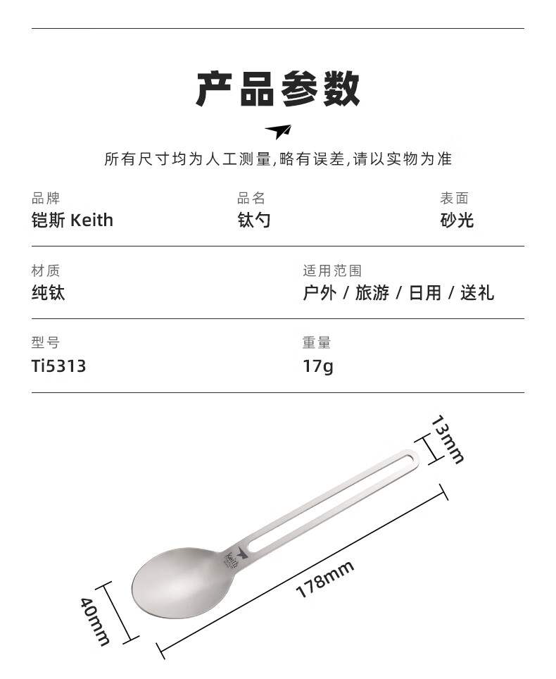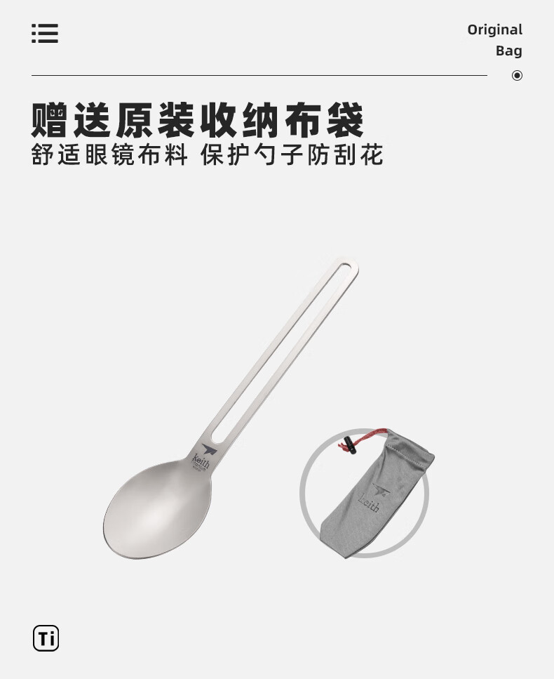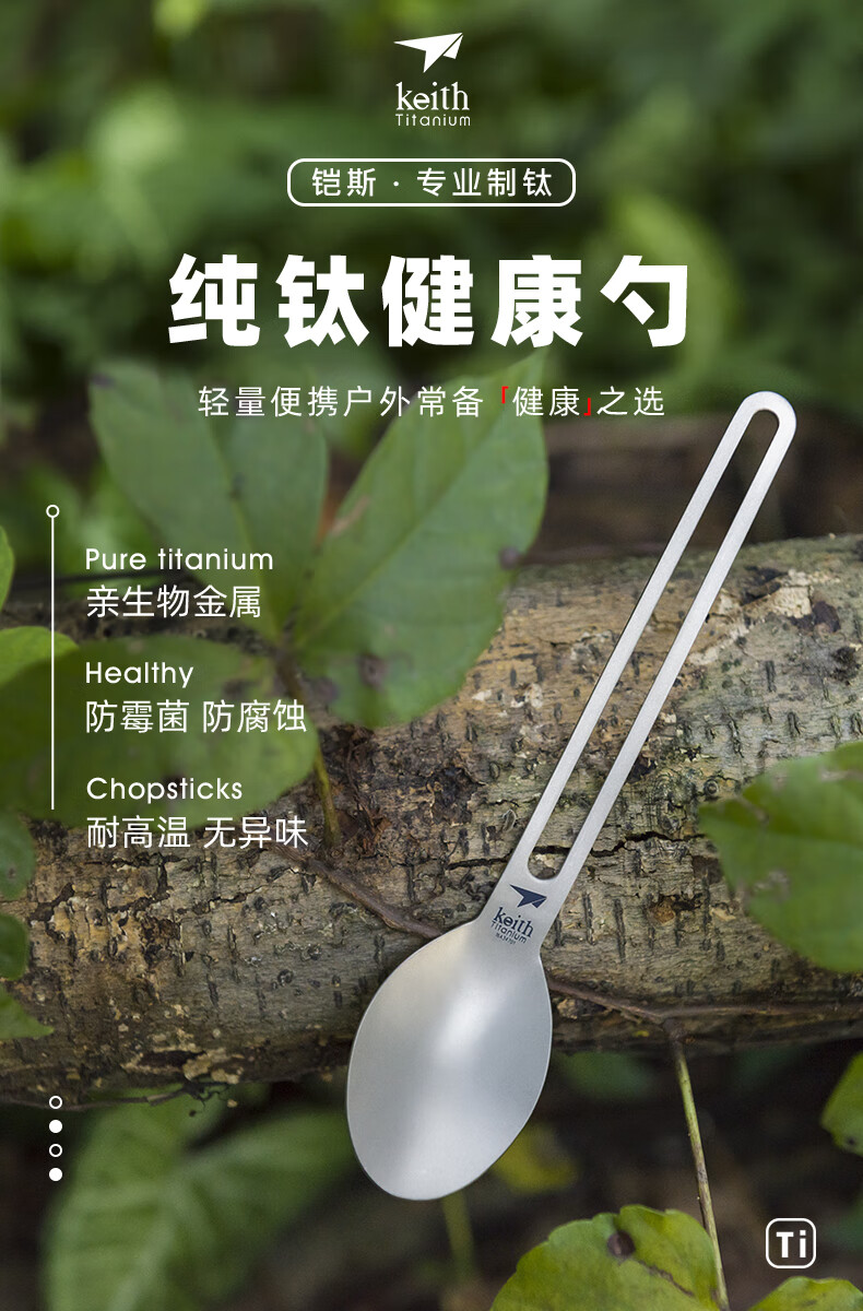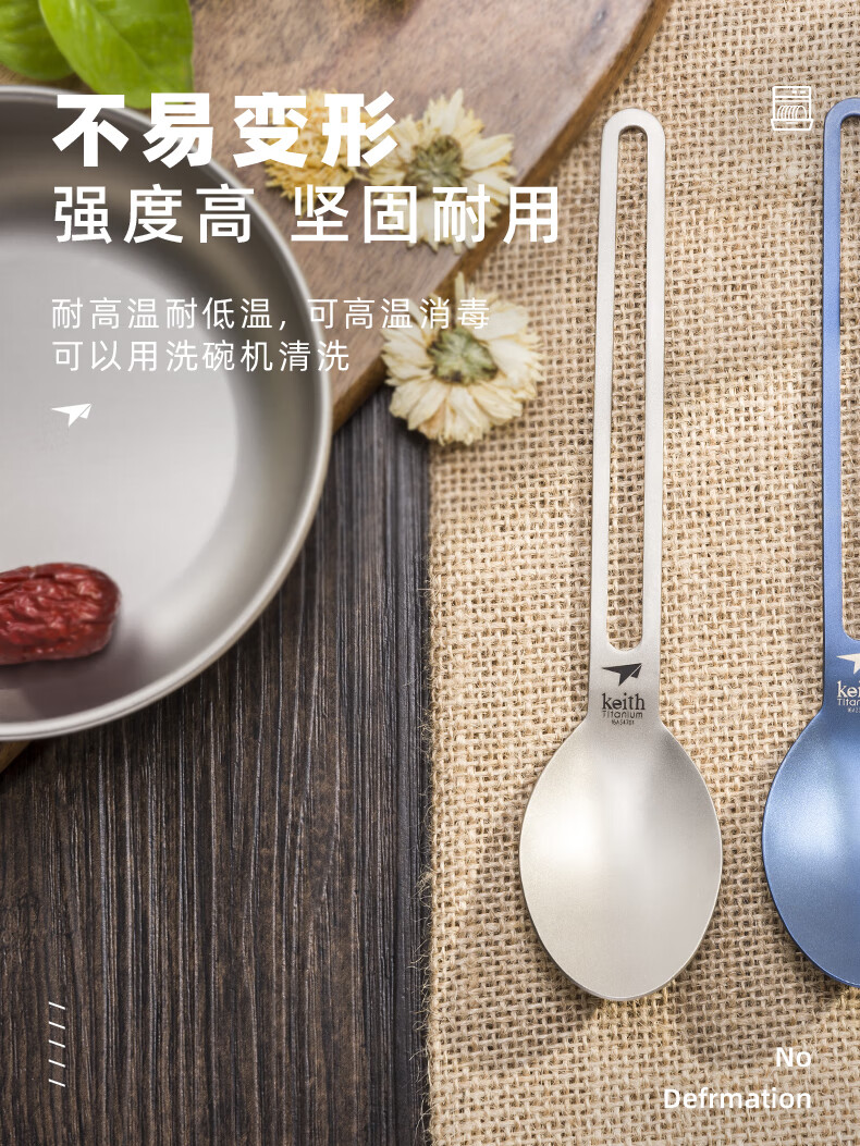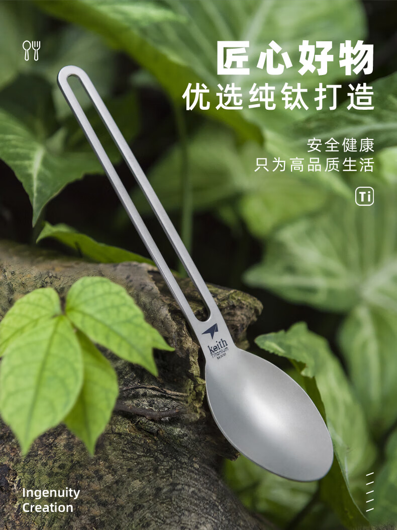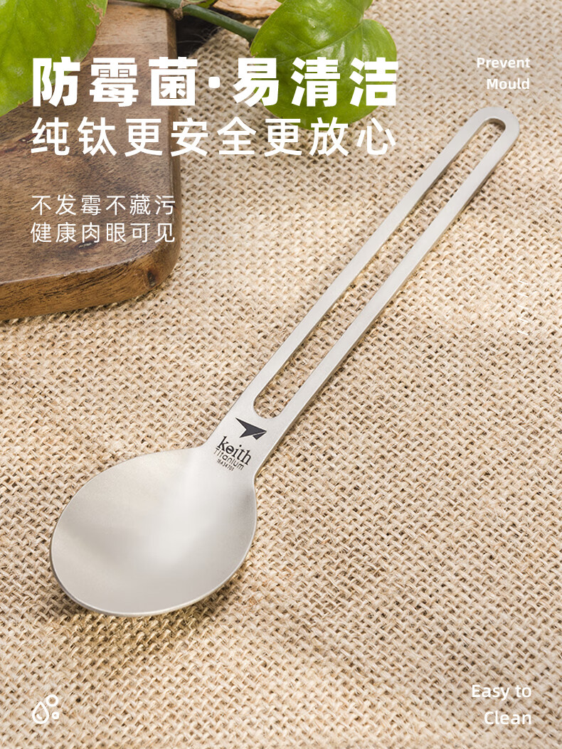 KEITH铠斯【钛勺轻质钛】 家用长柄钛勺汤勺 调羹便携户外餐具勺子