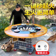 襄睿柴火灶农村家用灶移动铁锅炖灶台桌柴火鸡多功能烧柴火锅台带桌子 一键点火1.6米圆桌【52锅】