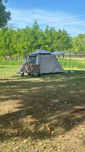 帐篷刚好合适,选了很久才选的这款黑胶天幕二合一,天幕相对较大的,到货第一周就去露营了,如果人多点天幕就有点小,一家人的话勉强可以。就是双十一之后就降价了,感受不太好。
