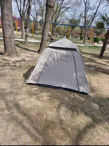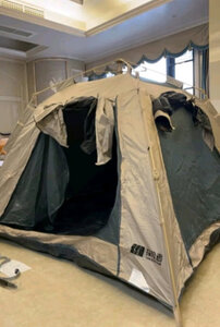 物流发货很快,收到很大。 幸亏露营车买的特大号,帐篷收起来也能放进去。 一个人也能操作好,一提就打开了,收起来也方便。 空间够大,几个人在里面都够。躺下的空间也足够! 唯一有一个不好的地方“地钉太细了”。土地硬的情况,钉子使劲插的话就弯曲了,这个非常不好。(之前买的1米5的帐篷也是探路者的钉子就很粗,很牢固)这个2米4✖️2米4的反而钉子很差劲,帐篷越大钉子不应该更好吗~?