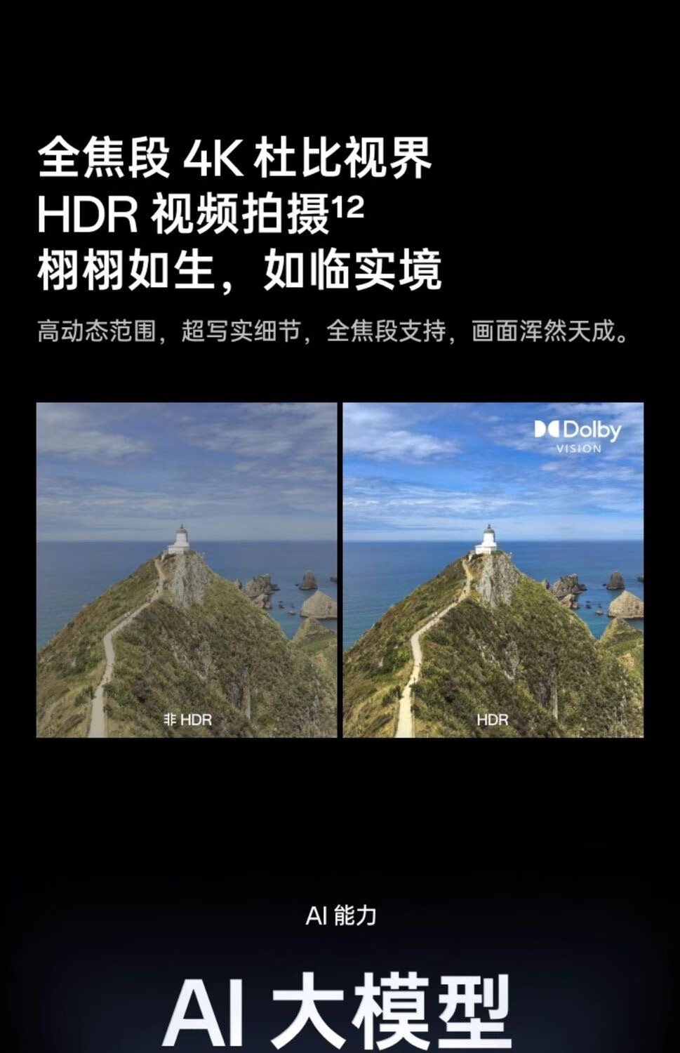 AI大模型,轻薄,LTPO屏幕,高频PWM调光,全焦段影像,潜望式长焦,NFC,红外遥控,大底主摄