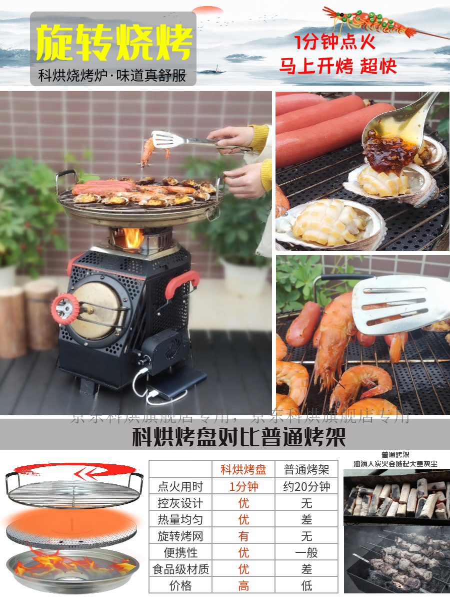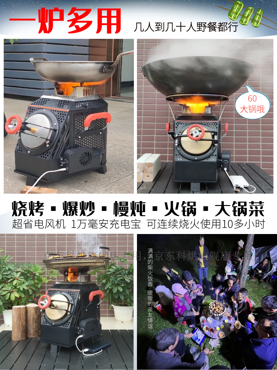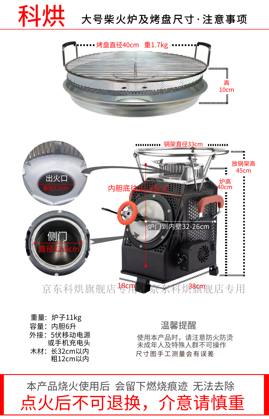 科烘大号柴火炉户外气化无烟便携庭院洪供猛火烧烤盘农村最新款柴火灶 豪华版庭院柴火灶+圆桌+烤盘+锅架