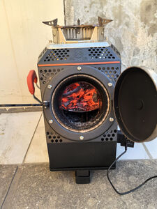 虽然是有点贵,但做工确实不错,很有机械感。我每天烧一壶五升开水,大概十五分钟。这个炉膛很大,我烧水比较废柴,所以自己做了一个隔板,把炉膛抬高了六公分,省柴20%。外壳不烫手挺好,值得购买