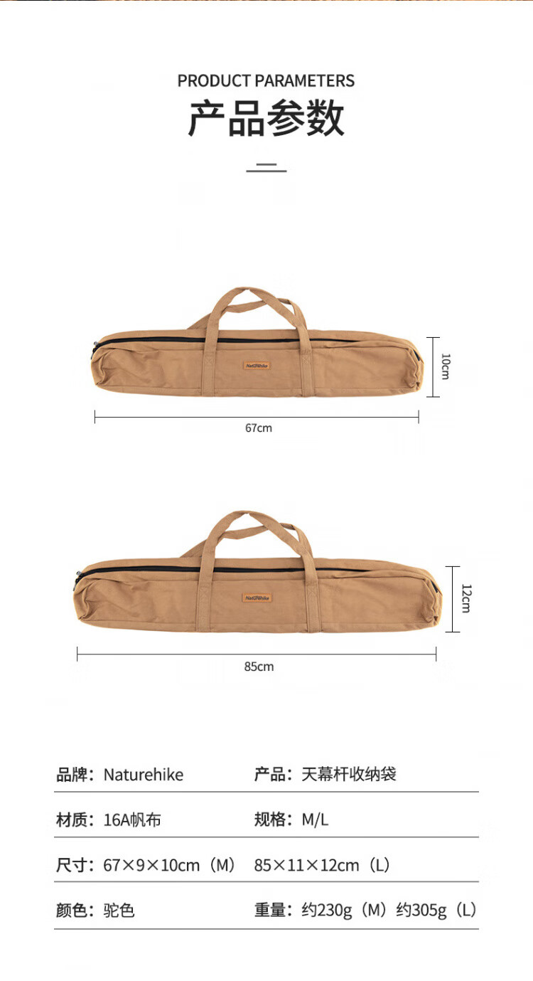 NatureHike挪客户外天幕杆收纳袋露营杂物配件收纳包储物袋耐磨 大号-驼色