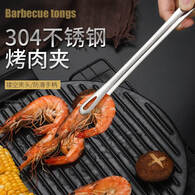 爱加芬户外烧烤夹露营野餐野炊厨房家用304不锈钢食品牛排烤肉夹子工具 全304钢烧烤夹:24cm