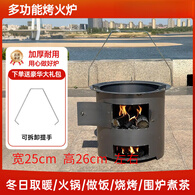 维诺亚加厚柴火火炉围炉家用煮茶取暖木柴户外便携多功能木炭烧烤 (大号)直径25cm-高26cm 特厚款多功能桶炉