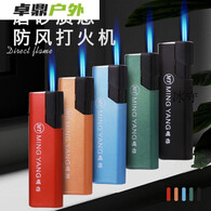 金属防爆电子防风蓝焰直冲打火机厂家直销家用可充气耐用 H16美拉德2支颜色随机发防风
