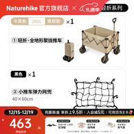 Naturehike挪客轻折全地形聚拢露营车宽轮折叠小推车野外摆摊快递购物手拉车 网兜套餐/ 280L 有刹车 /卡其色