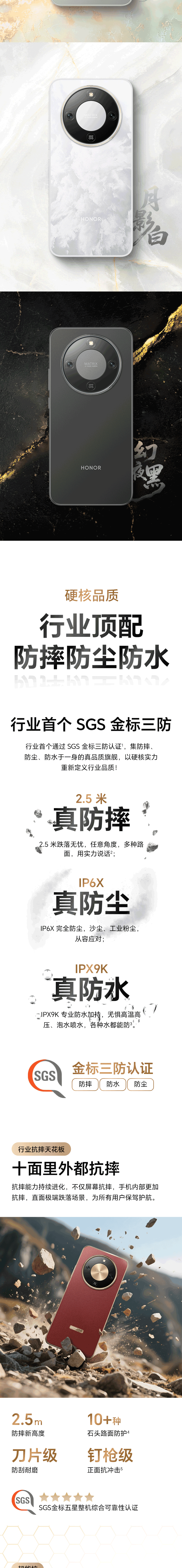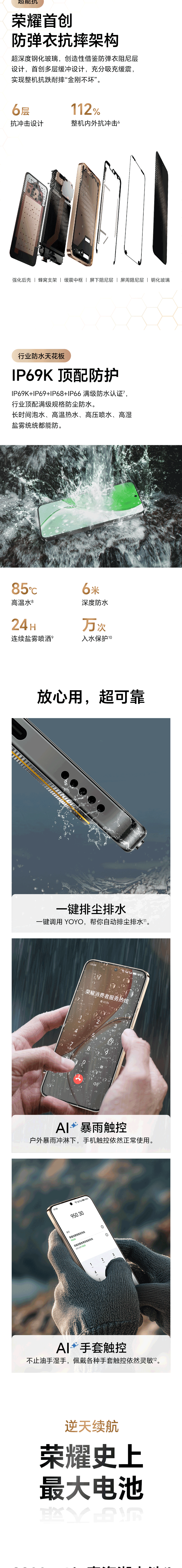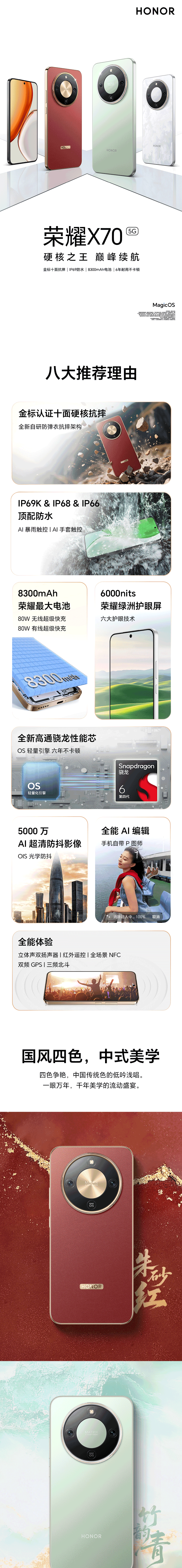 荣耀X70 金标十面抗摔 8300mAh青海湖电池 IP69防水 荣耀绿洲护眼屏 AI手机 朱砂红 8GB+256GB 官方标配