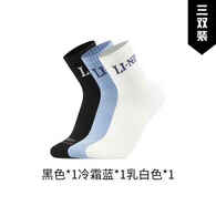 李宁男女同款运动生活系列2025年秋季新款透气舒适中袜三双装AWTV121 霜蓝色/黑色/乳白色-2