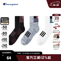 冠军(CHAMPION)舰旗纯棉运动袜子男女休闲中筒条纹黑白灰跑步吸汗透气学 白色 3双