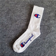 冠军涂鸦2双装潮牌纯棉袜子透气高中筒男女街舞滑板 大标白色2双