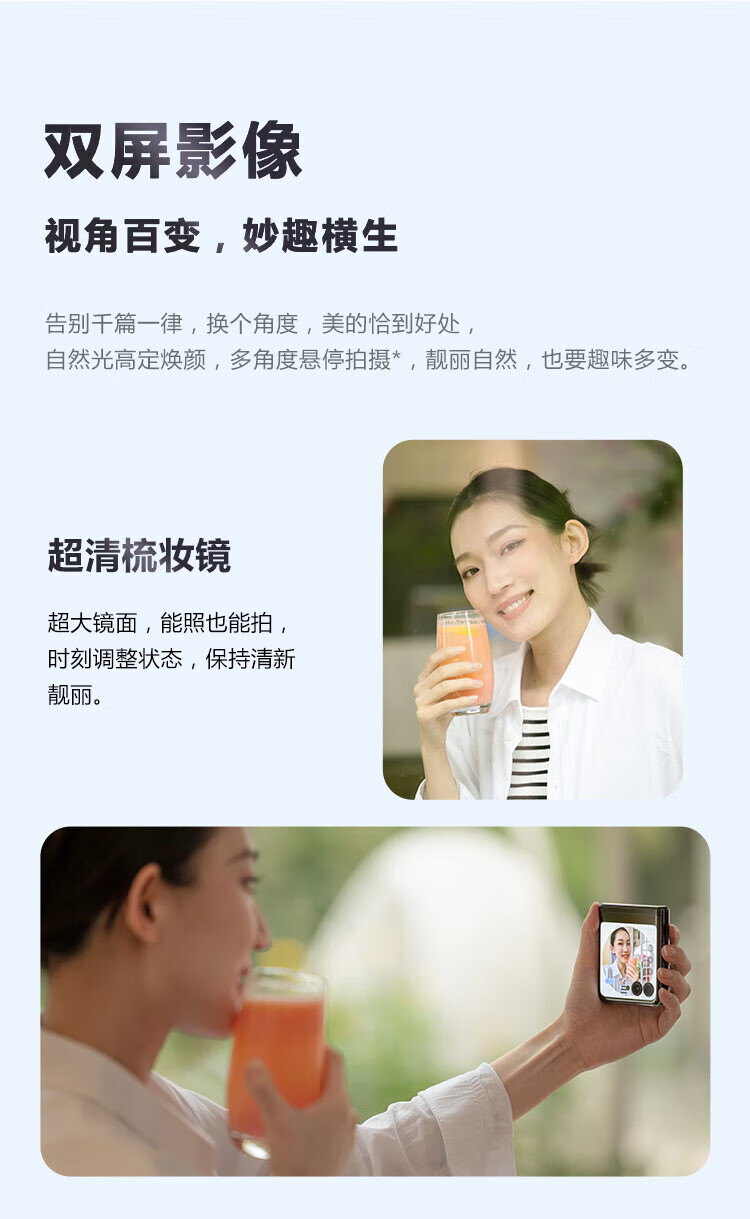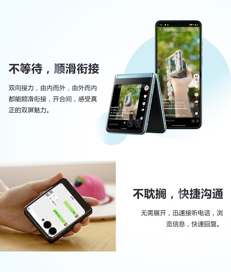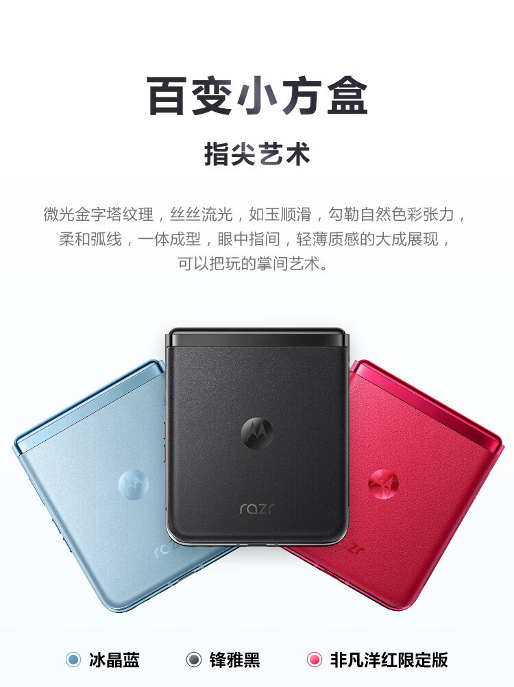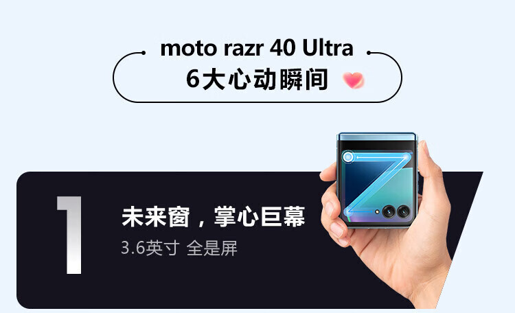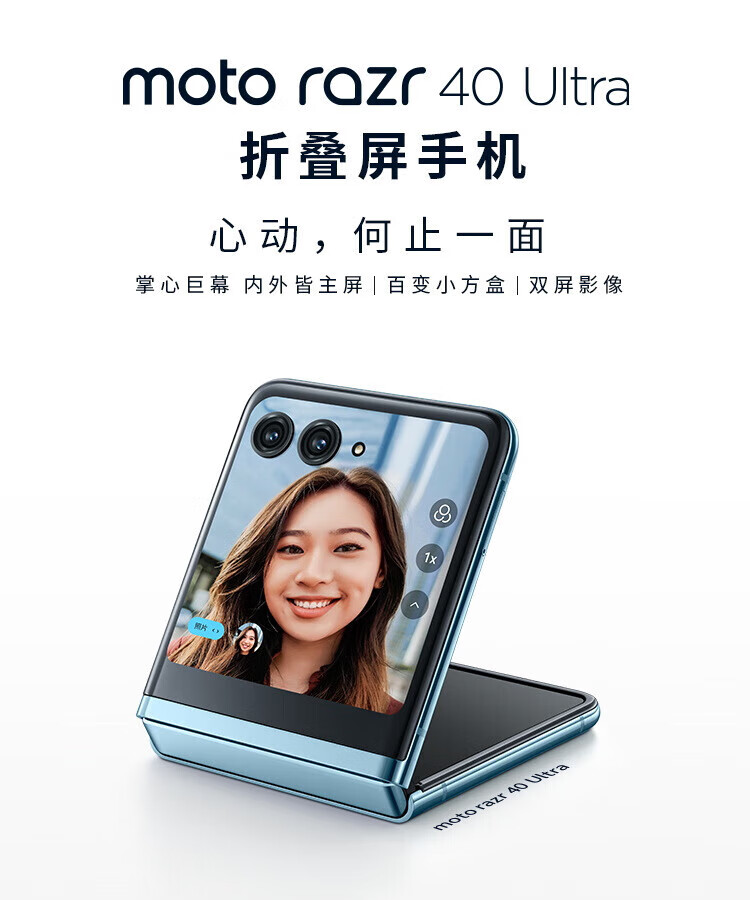 摩托罗拉(Motorola)moto razr40 Ultra 掌心巨幕外屏海量应用无线充电骁龙8+ 5G折叠屏手机 razr40Ultra冰晶蓝12G+512G 官方正品&全国联保 晒图赠无线冲【补贴中】