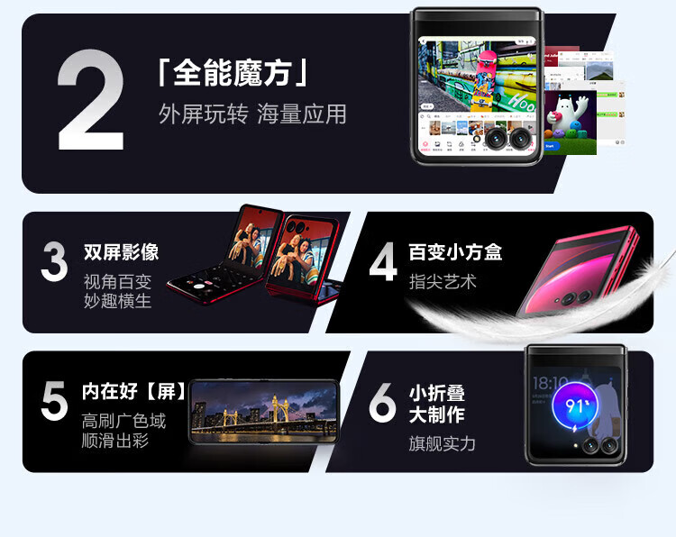 摩托罗拉moto razr40Ultra 5G折叠屏单卡手机 razr 40Ultra 摩托折叠 锋雅黑 国行原封 全网通5G 8+256G