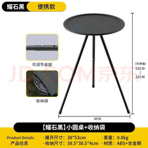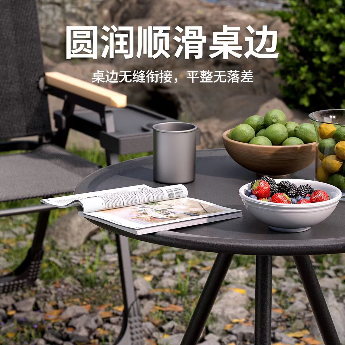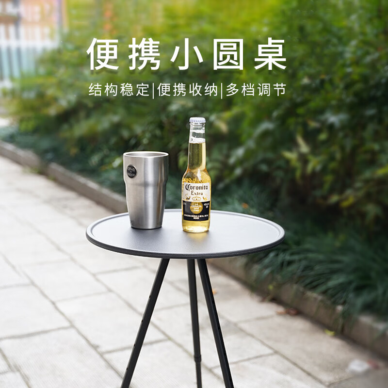SIDADO户外折叠桌子铝合金升降小圆桌露营桌椅野餐折叠便携式装备 曜石黑小圆桌+收纳袋