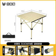 米客喵户外露营全套装备桌椅 折叠蛋卷桌克米特椅 野餐铁长桌椅套装 【推荐2-4人】加厚中号米色方桌
