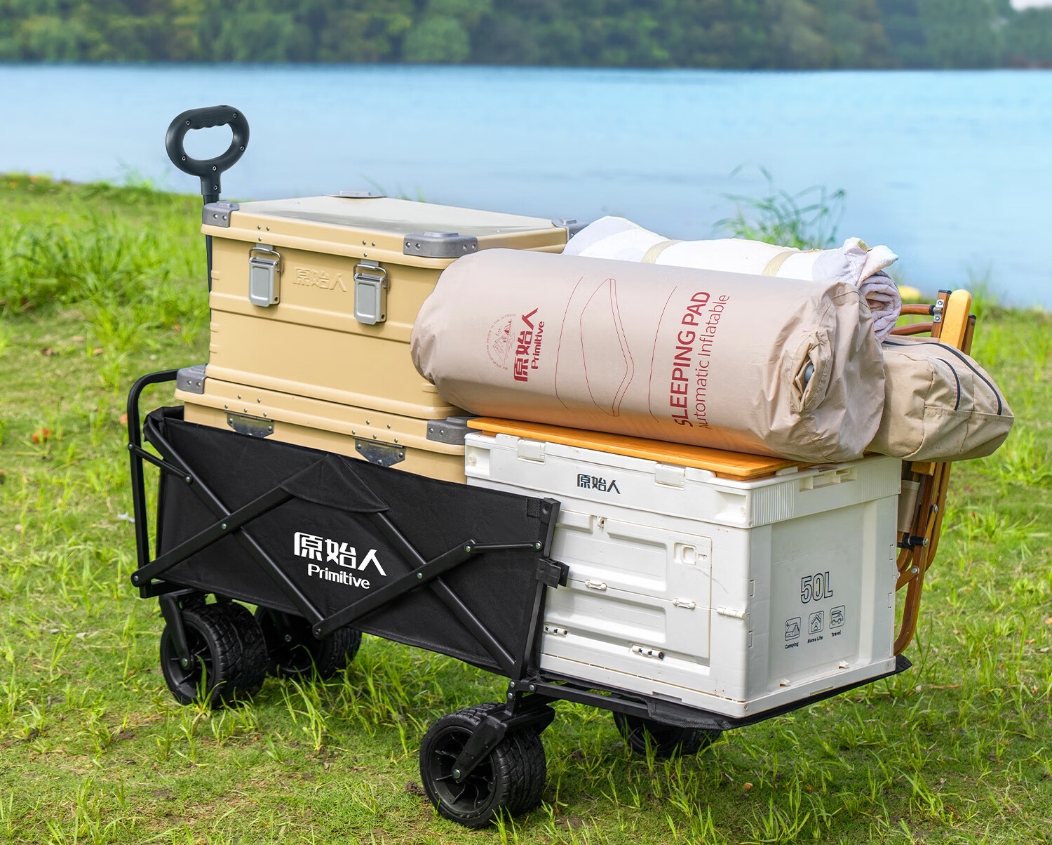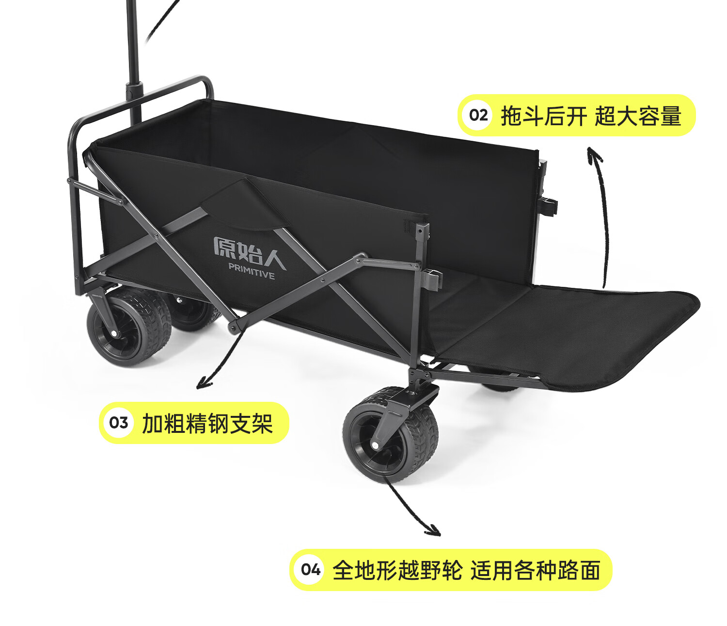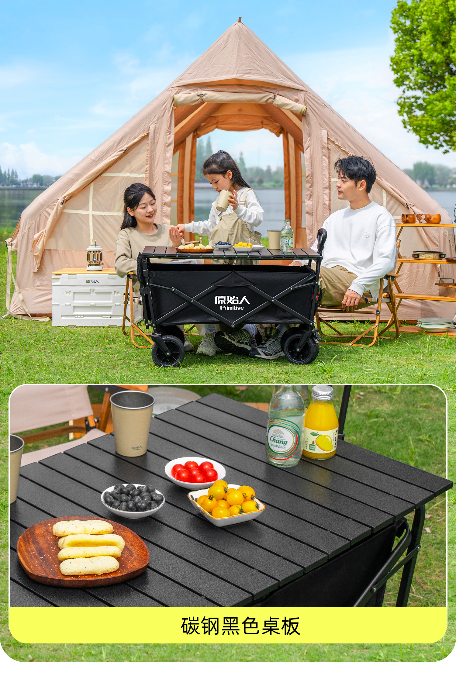 原始人(The Primitive)露营推车户外营地拖车旅行可折叠手推野餐野营手拉车遛娃小推车 160L 加厚款卡其+木色碳钢桌板