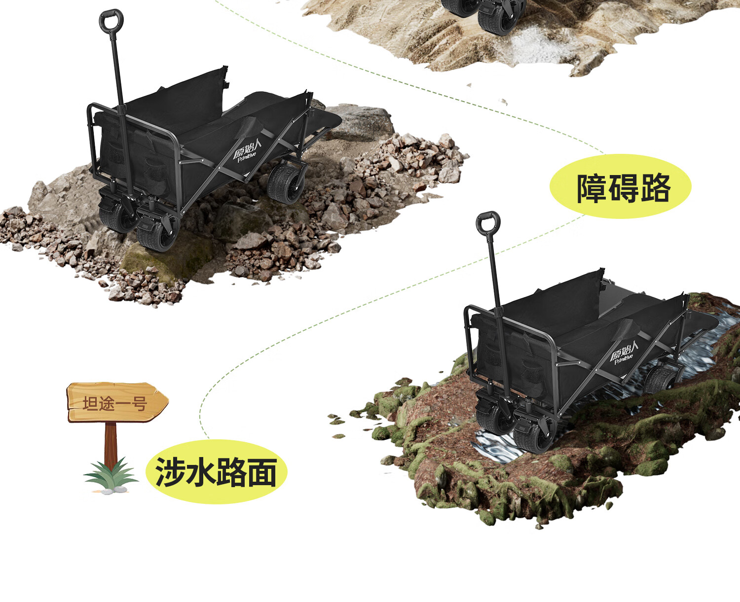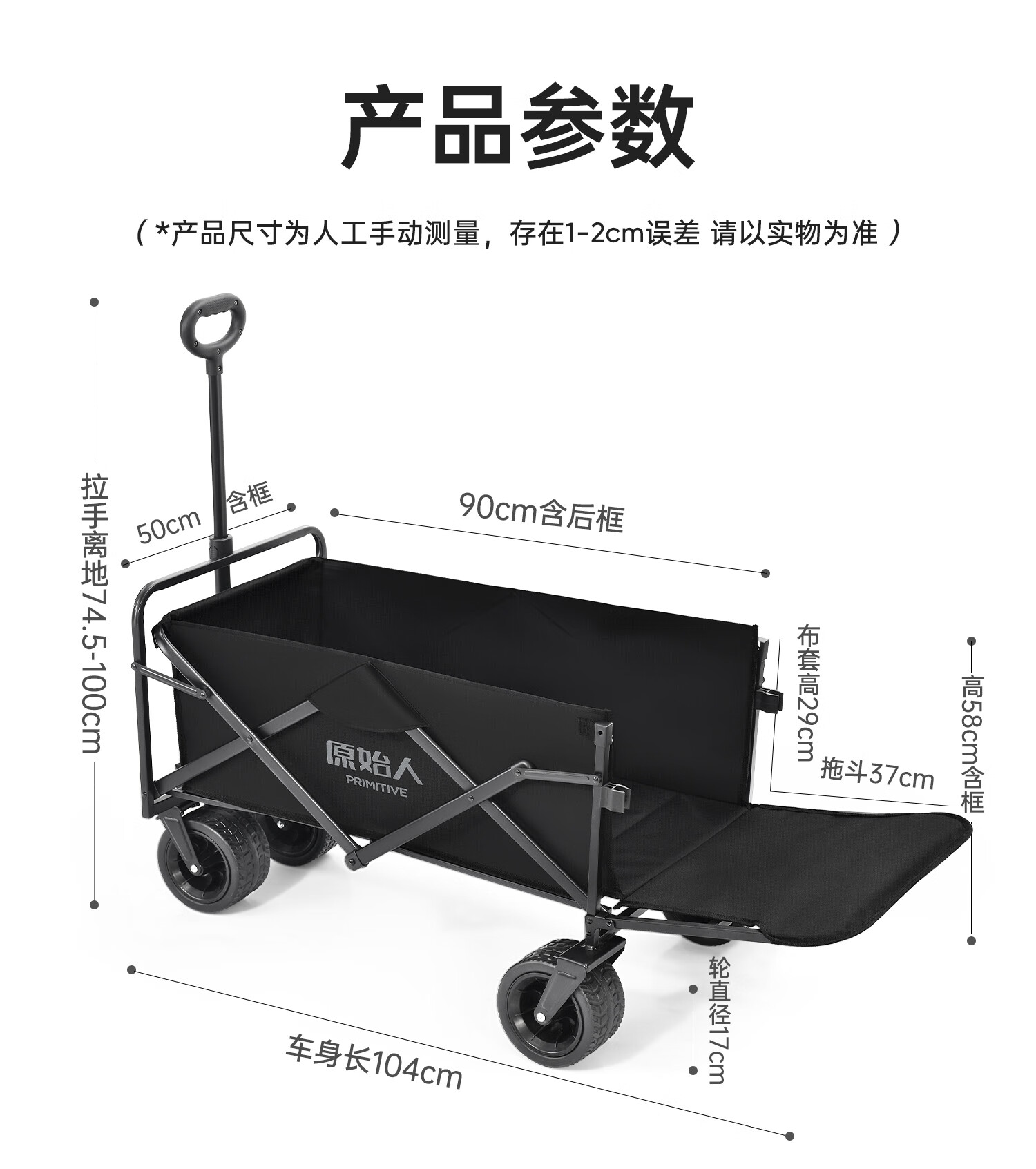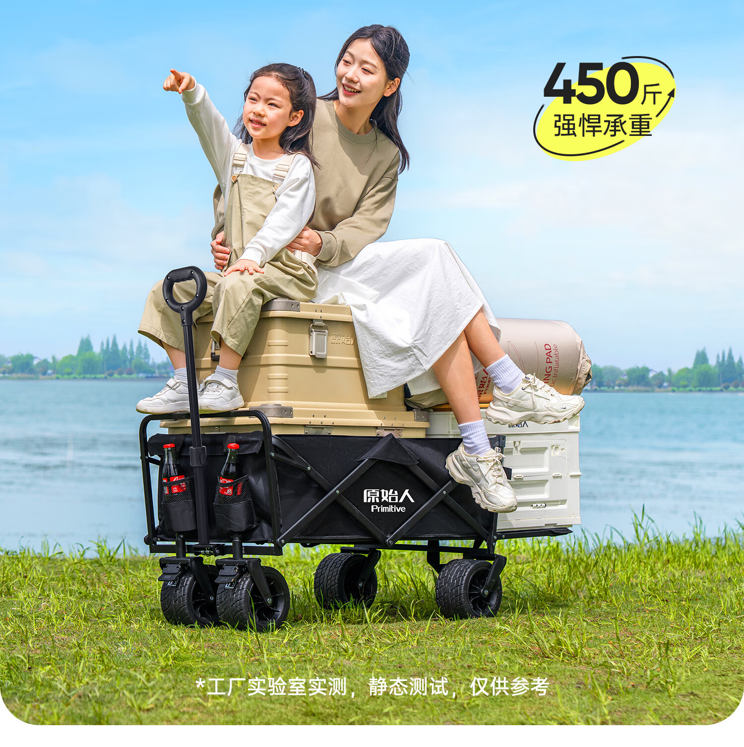 原始人(The Primitive)露营推车户外营地拖车旅行可折叠手推野餐野营手拉车遛娃小推车 160L 加厚款卡其+木色碳钢桌板