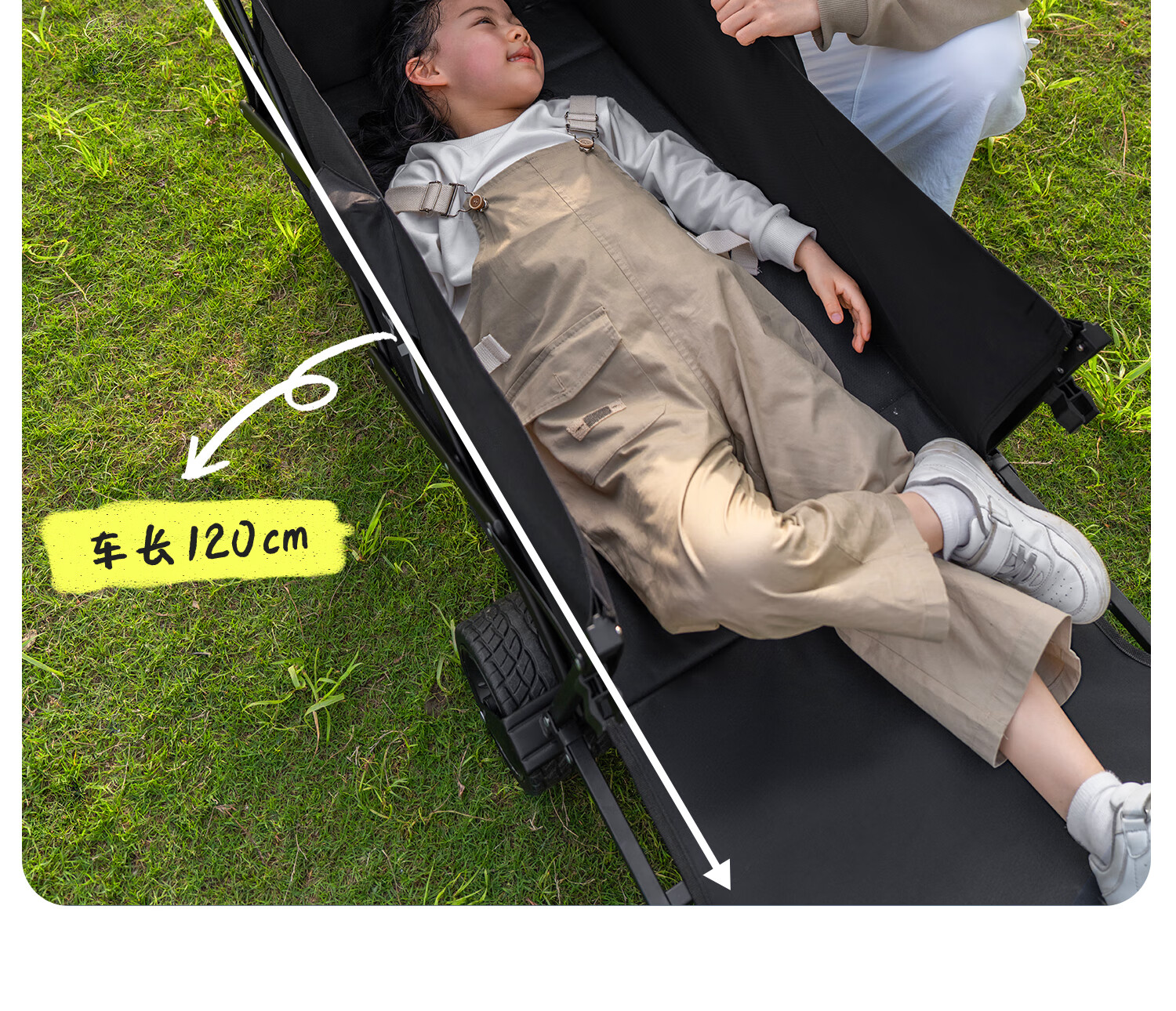 这款露营车非常的大,非常的好,小孩坐里面非常的大,非常的方便,材料也非常的不错,拉起来非常的轻便,非常的适合,非常不错的购物体验,值得推荐。