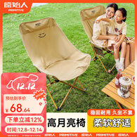 原始人户外折叠椅便携式钓鱼椅月亮椅野餐躺椅懒人椅休闲椅露营椅子 经典加高款-卡其【软包夹棉】