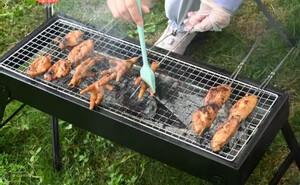 夏天到了,小烧烤安排上,京东买的这个烧烤箱,发货很快,可以折叠,也好收纳,很不错。,就是铁皮有点薄!