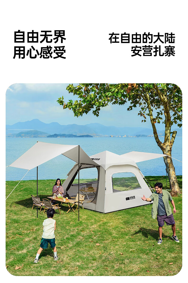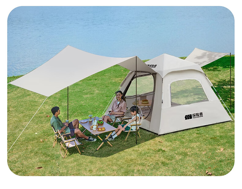 探险者帐篷户外露营防雨过夜速开帐篷天幕二合一全自动便携式加厚遮阳 奶酪咖【两门两窗帐篷】3-5人