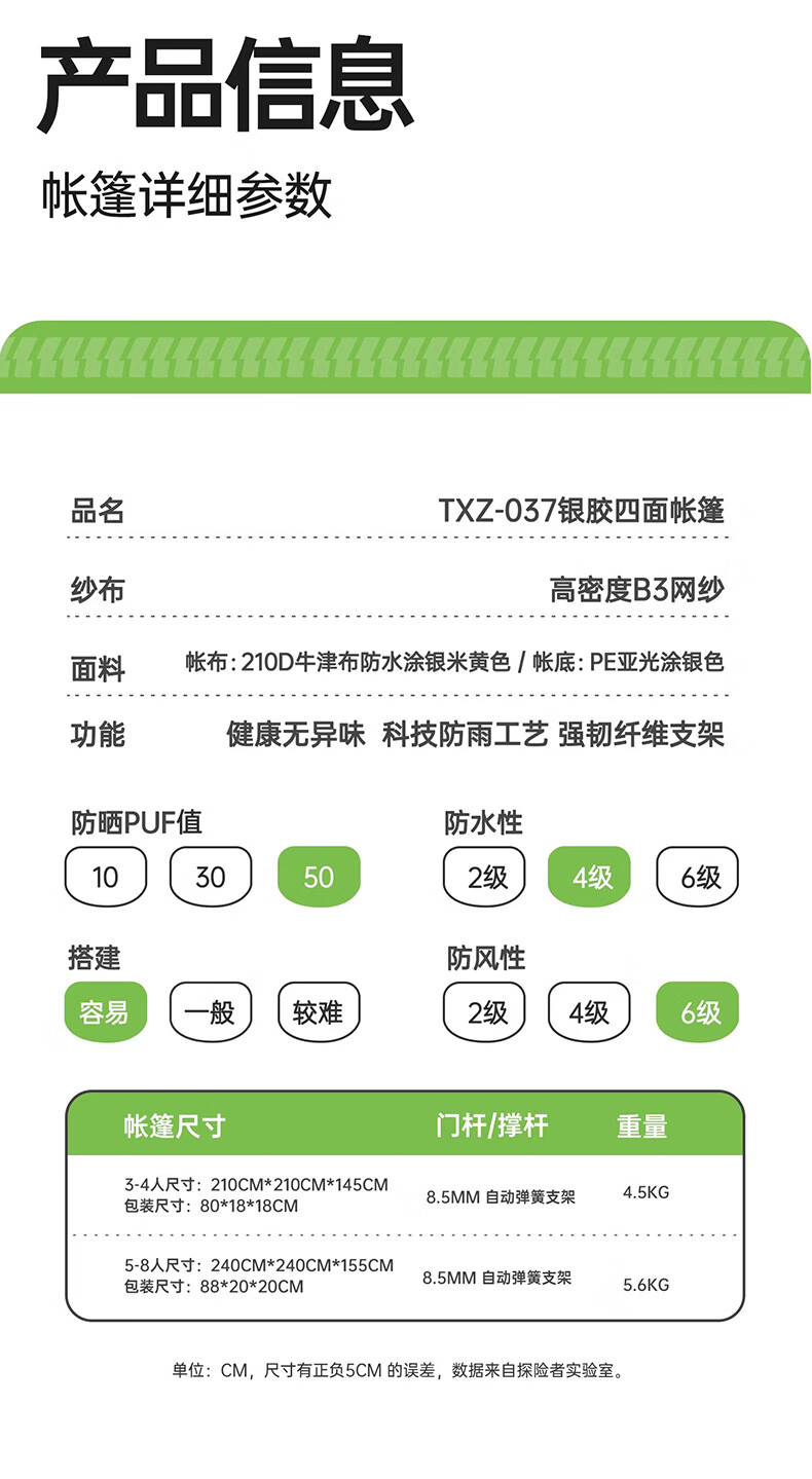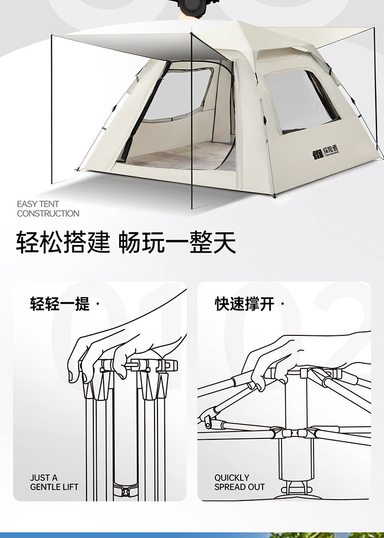 东西挺好的,正好出去露营可以用得上推荐购买。防水效果也还可以,正常使用。挺大的,能够容纳挺多人的。里面有很详细的说明书。