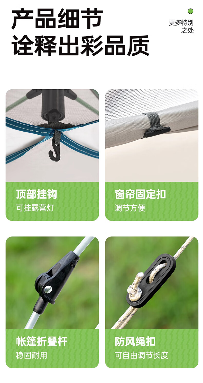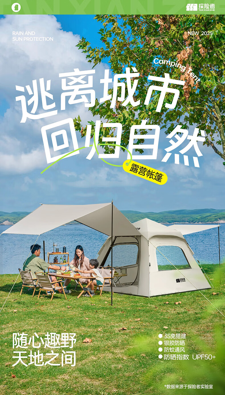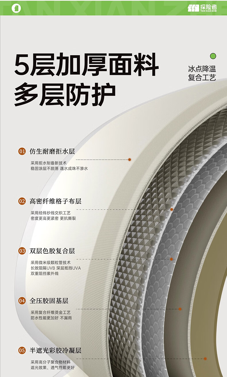 探险者大品牌值得信赖,遮阳效果好,拿手机灯光试了一下,内部空间大,支架牢固液压顺畅,服务细节贴心 东西满意,大品牌就是不一样
