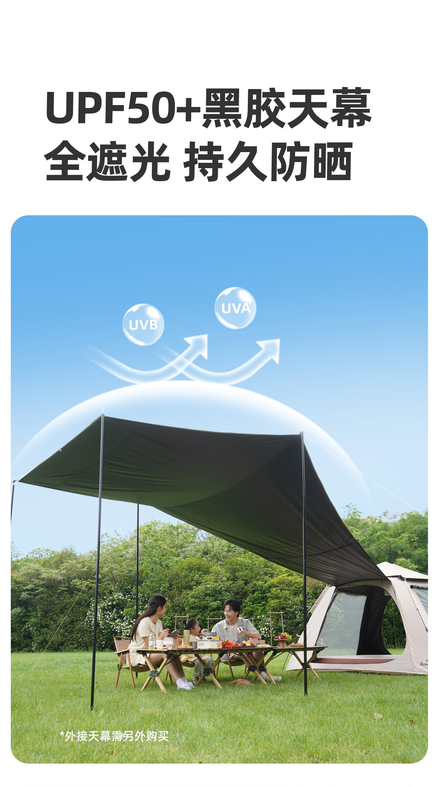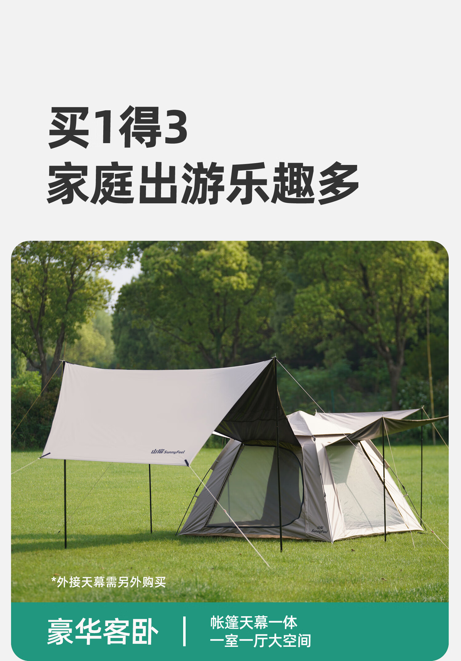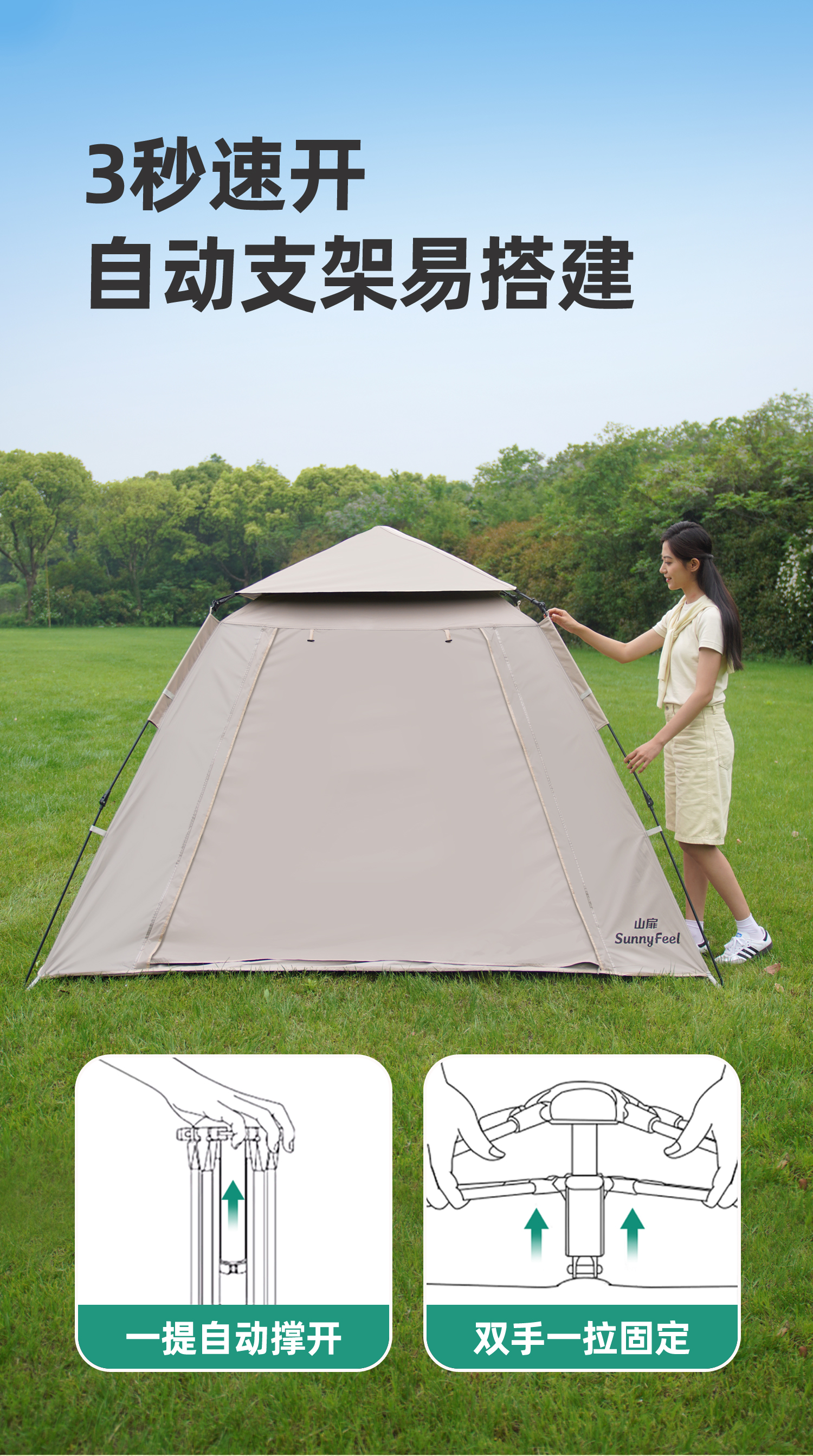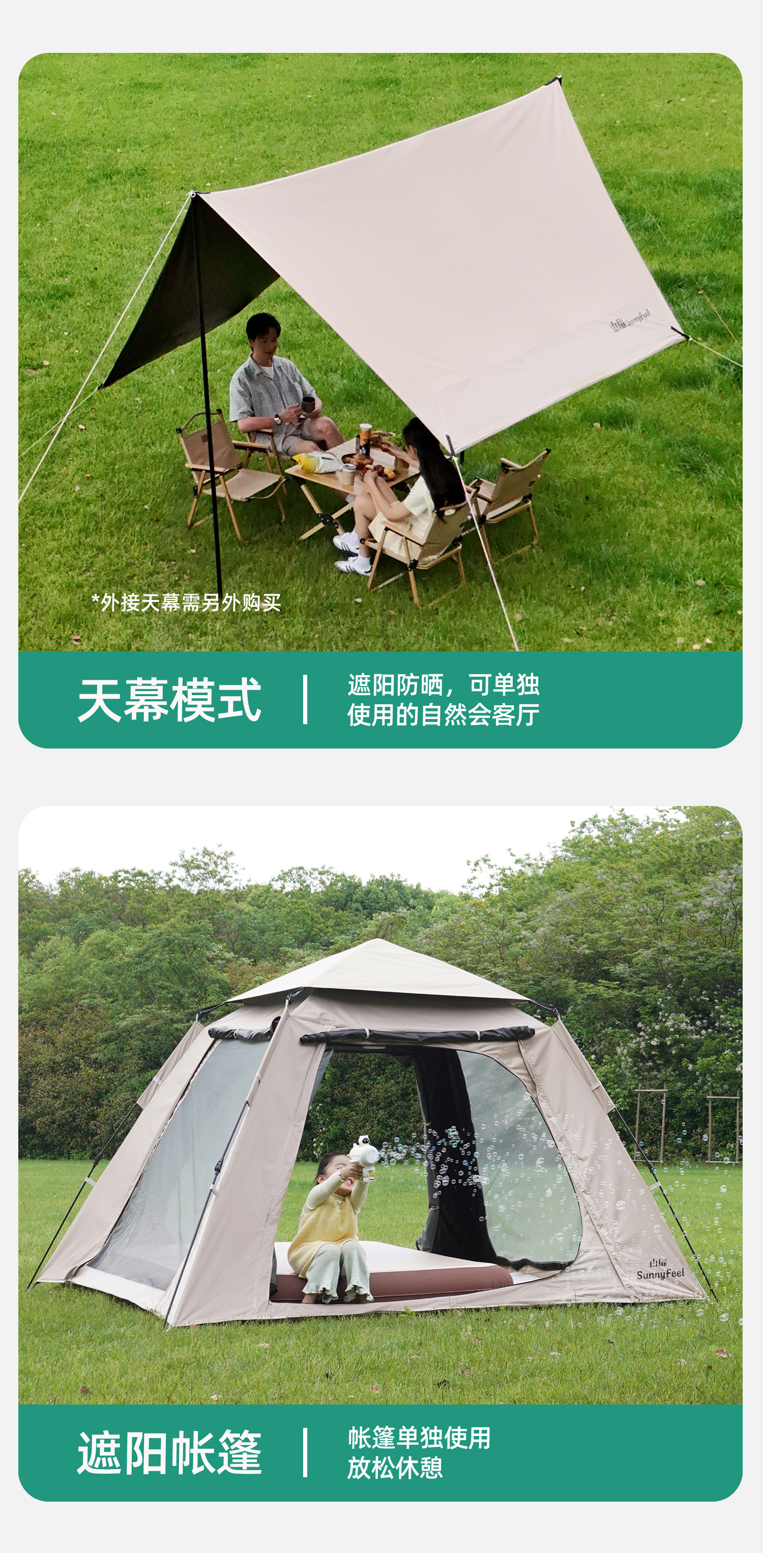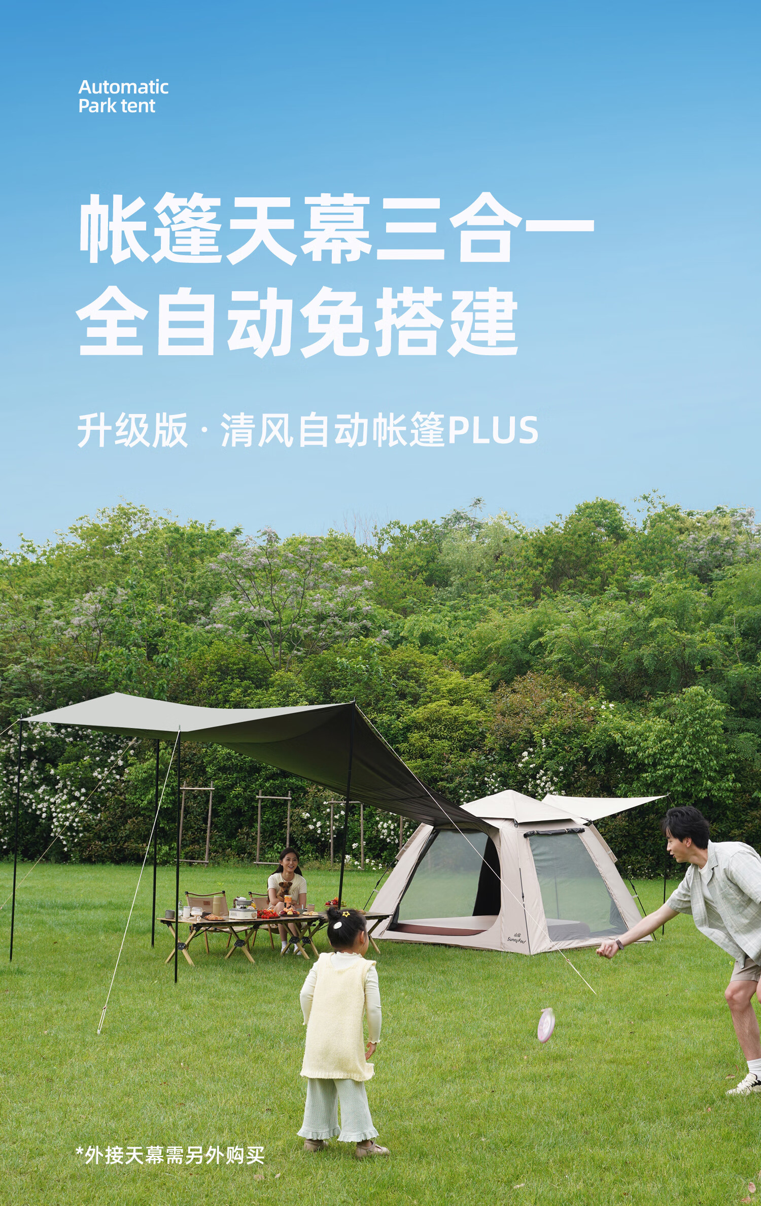 山扉山扉全自动帐篷户外露营折叠便携黑胶帐篷天幕二合一野营过夜装 2-6人【240cm加高天幕/全黑胶遮光】拓展天幕