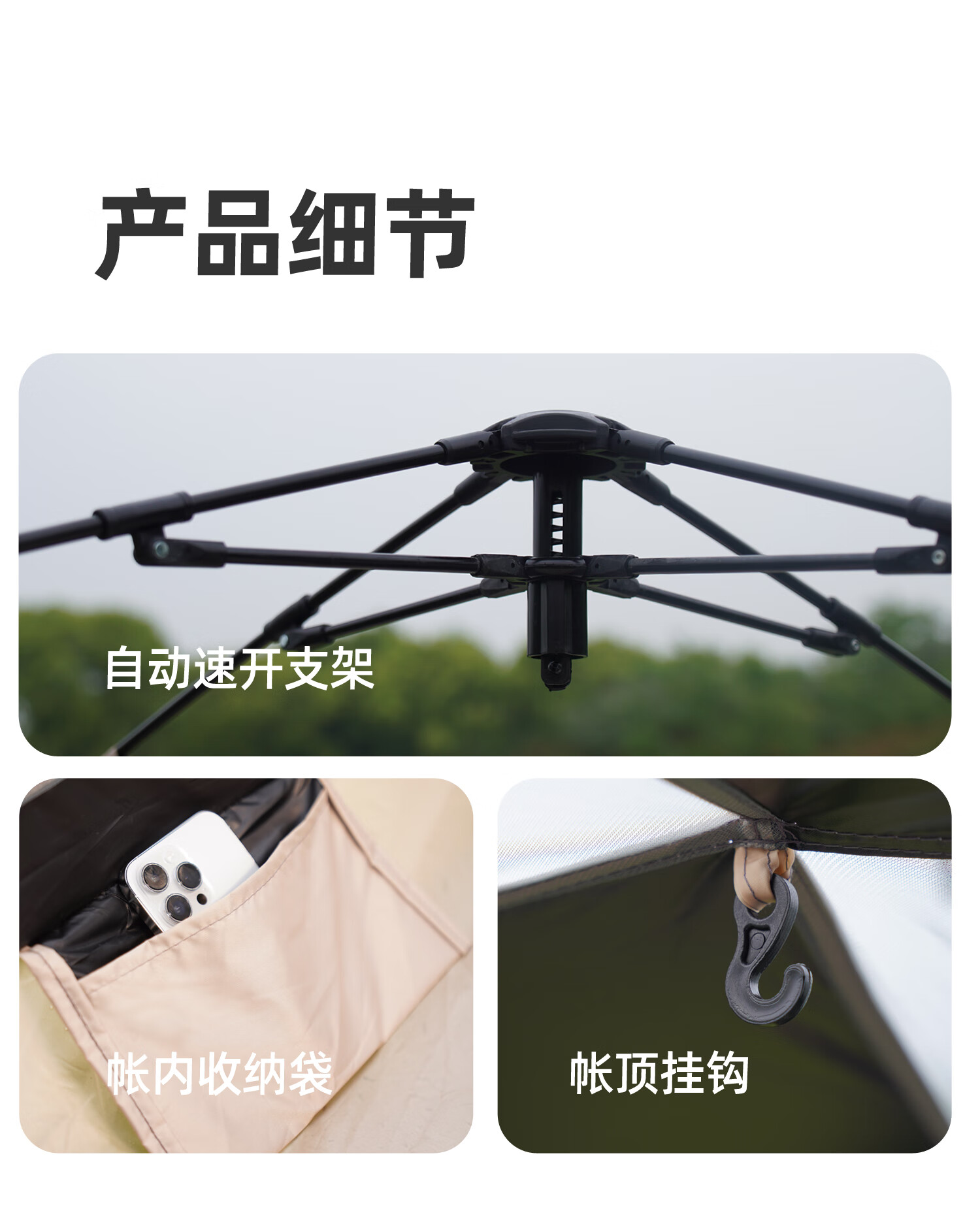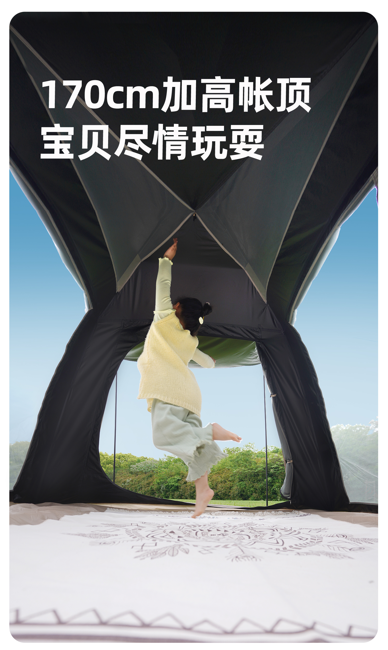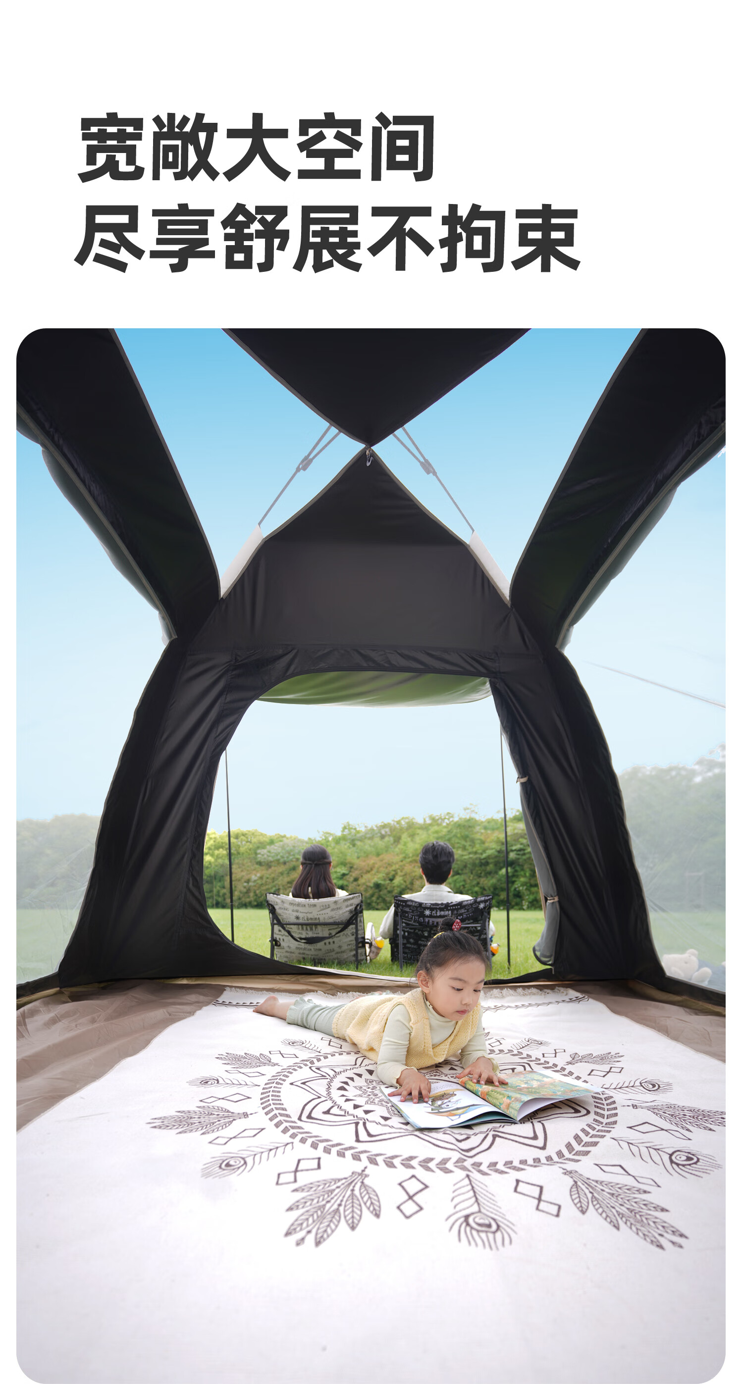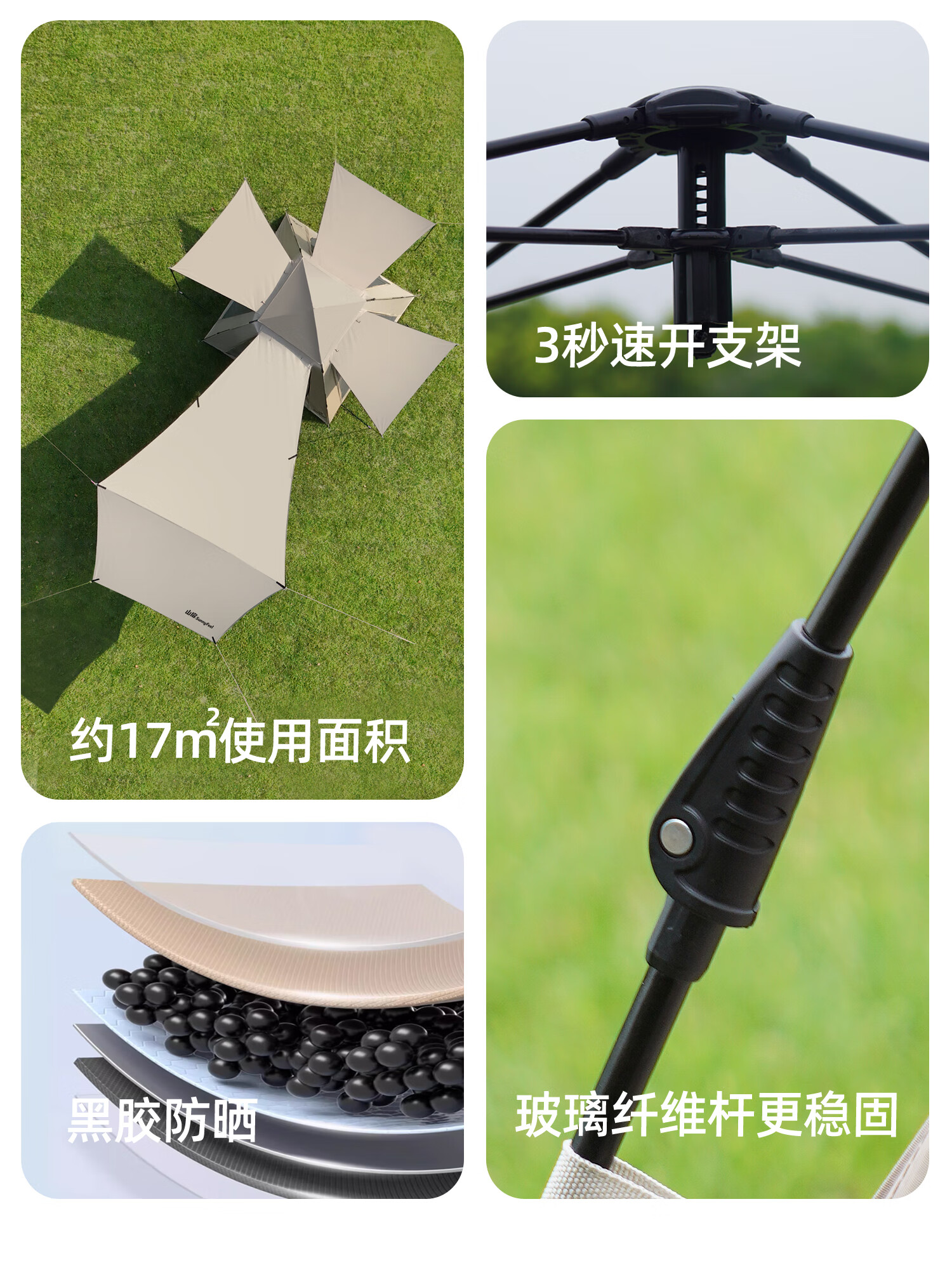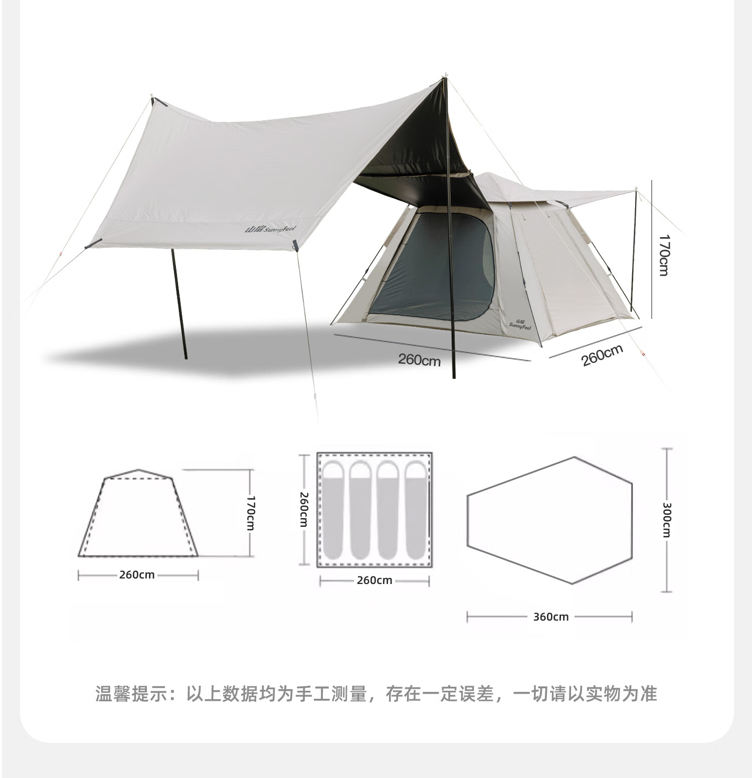 山扉山扉全自动帐篷户外露营折叠便携黑胶帐篷天幕二合一野营过夜装 2-6人【240cm加高天幕/全黑胶遮光】拓展天幕