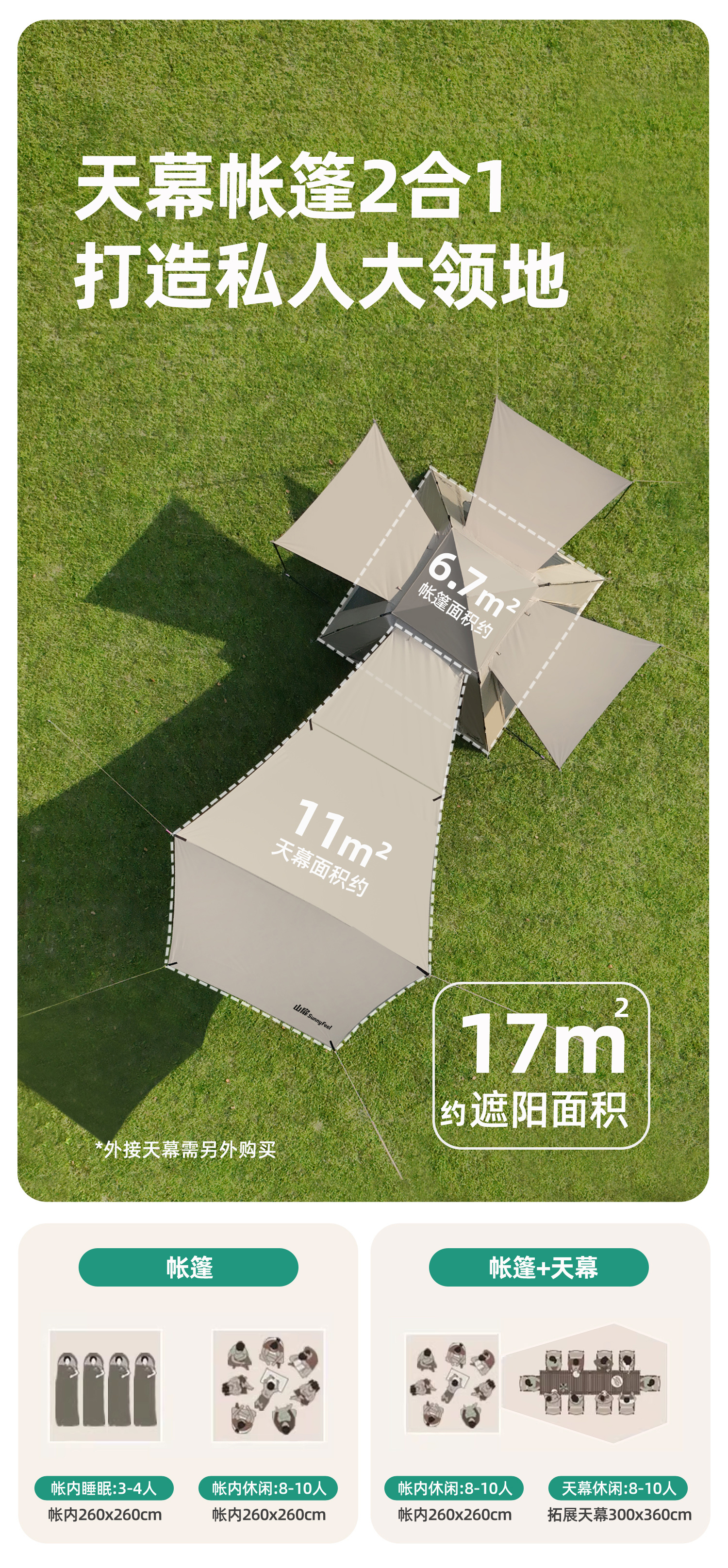 山脊户外露营装备DIY六角穹顶客厅帐篷模块便携野营过 六合穹浴盆地垫 370*320cm 均码