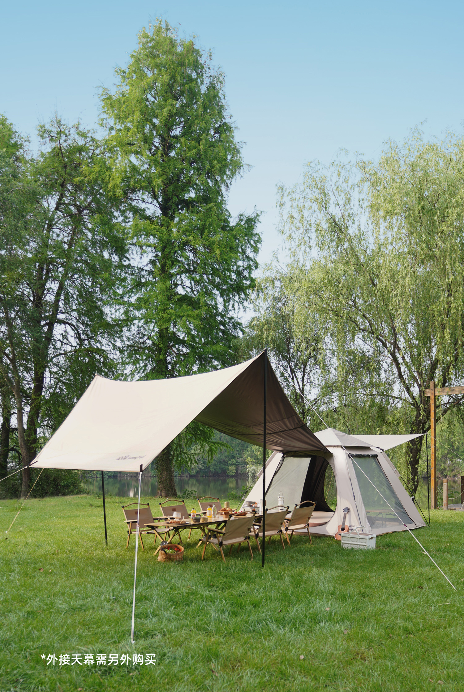 牧高笛(MOBIGARDEN)俊庭黑胶天幕 户外露营蝶形防晒遮阳布防雨大空间黑胶天幕 俊庭黑胶PO520天幕*1+月亮椅*4+碳钢蛋卷桌L套餐