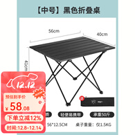 原始人 户外折叠桌铝合金便携式蛋卷桌野餐桌子露营桌椅套装野炊装备 【中号】黑色折叠桌(配收纳袋)