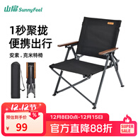 山扉安素聚拢克米特椅户外折叠椅子便携超轻露营野餐椅沙滩椅 聚拢收纳【收纳体积-60%】曜石黑