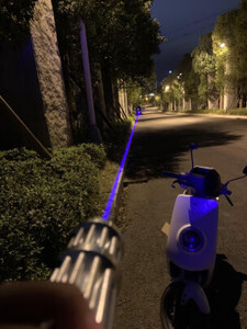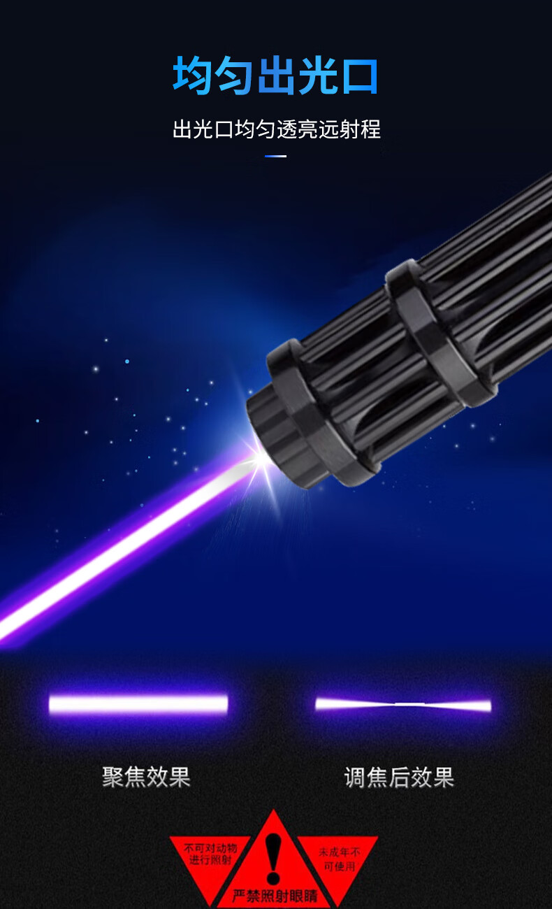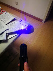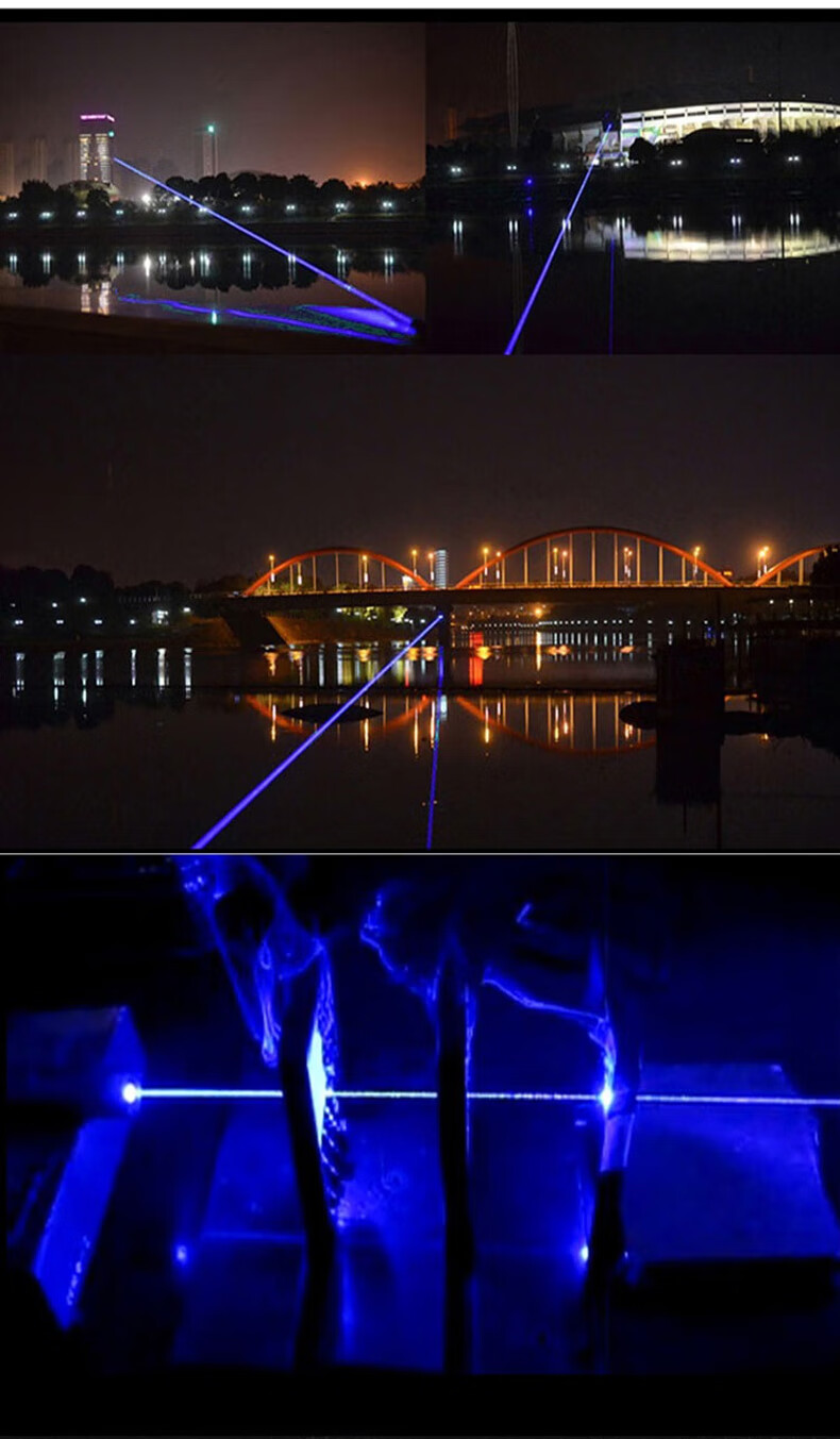 买来第一时间,燃烧纸张实验,距离30公分左右2到3秒,报纸冒烟烧出窟窿。赞!蓝色的光很强,很漂亮,很惊艳! 挺好玩的, 总体很棒。