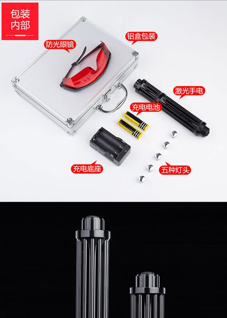 群火 激光笔蓝光大功率镭射灯强光远射可充电防身指星教鞭航海指示笔 短款【黑】二电一充+铝箱套装