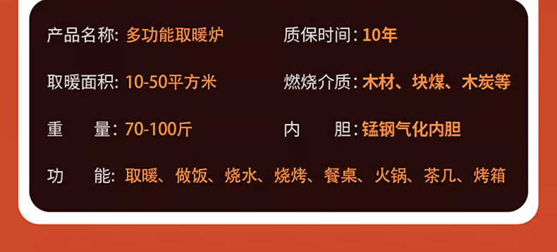 烤火炉不错,桌面很漂亮,设计可以很理想,送的两根排烟管,尺寸够长,我还裁了一段,安装好了,邻居来看来看说真的不错,邻居他说也要买,炒菜飘香炉火旺,冬季风霜雪夜伴炉旁