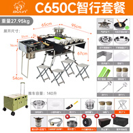 步林步林户外移动厨房露营野炊可折叠全套锅炉桌椅自驾游做煮饭装备 C650智行版+柴火炉+猛火炉】推车